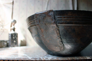 Many bowls of this type were food or dairy bowls and the marks and signs of use are an honest reflection of their daily use over the years and if used for soups or broths, for instance their colour becomes naturally darker. When the bowl is ‘dug out’ it simply means it was carved out from one piece of wood.