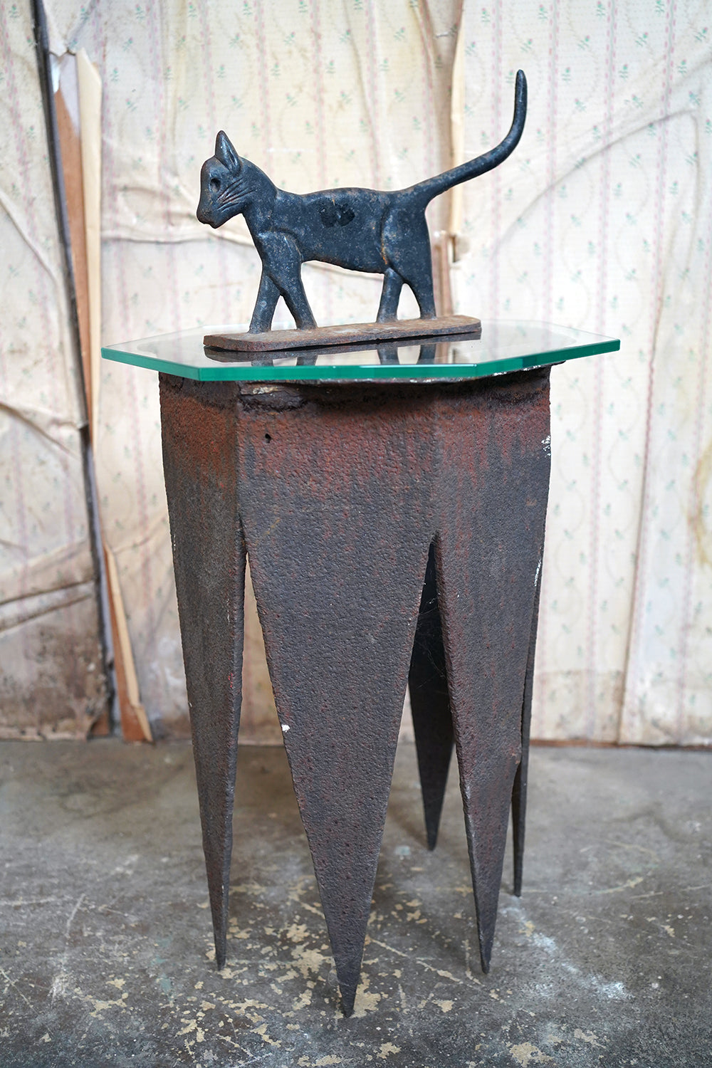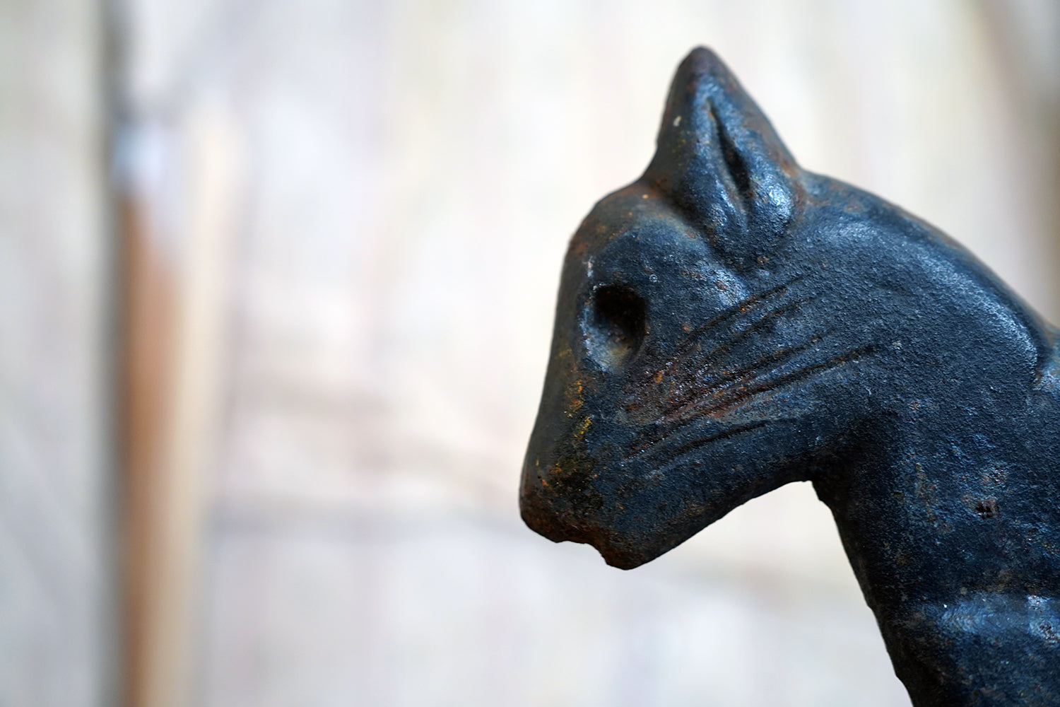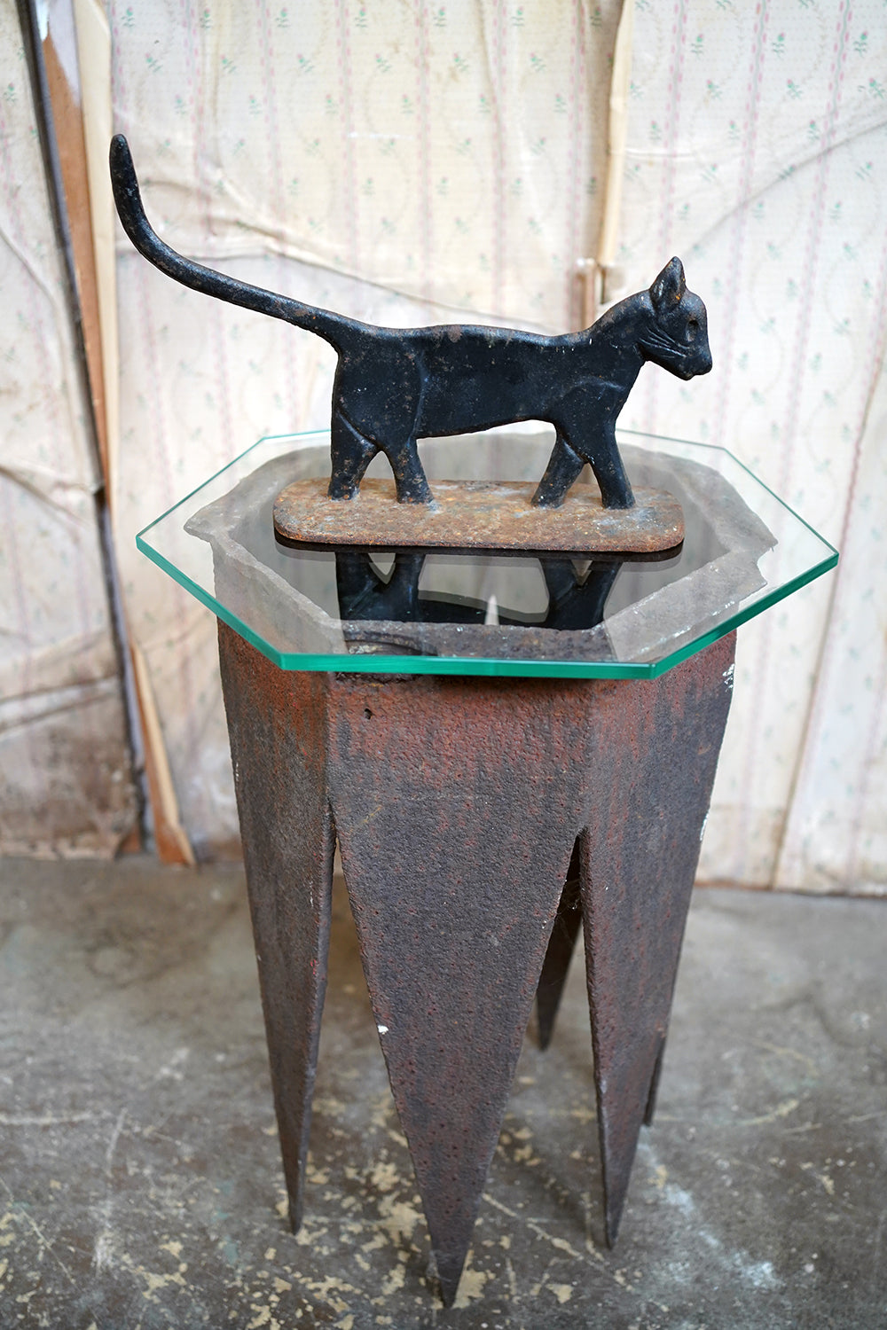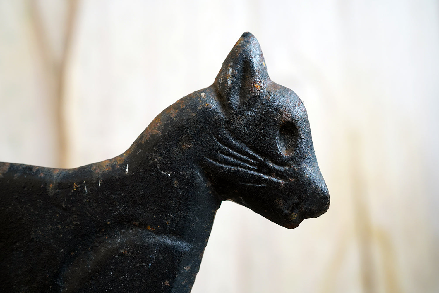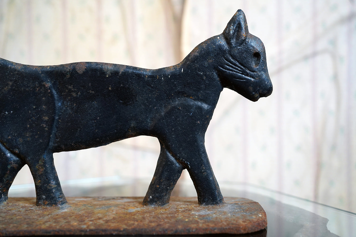 Boot scrapers of this type were a familiar feature on American porches and stoops in the late 19th and early 20th century, particularly in rural and small-town settings where cast iron architectural fittings were both practical and decorative. Animal-form scrapers, especially cats, are considerably scarcer than the more common foliate or geometric examples, and they sit comfortably within the broader vernacular tradition of American folk casting, where utility and whimsy meet without self-consciousness.