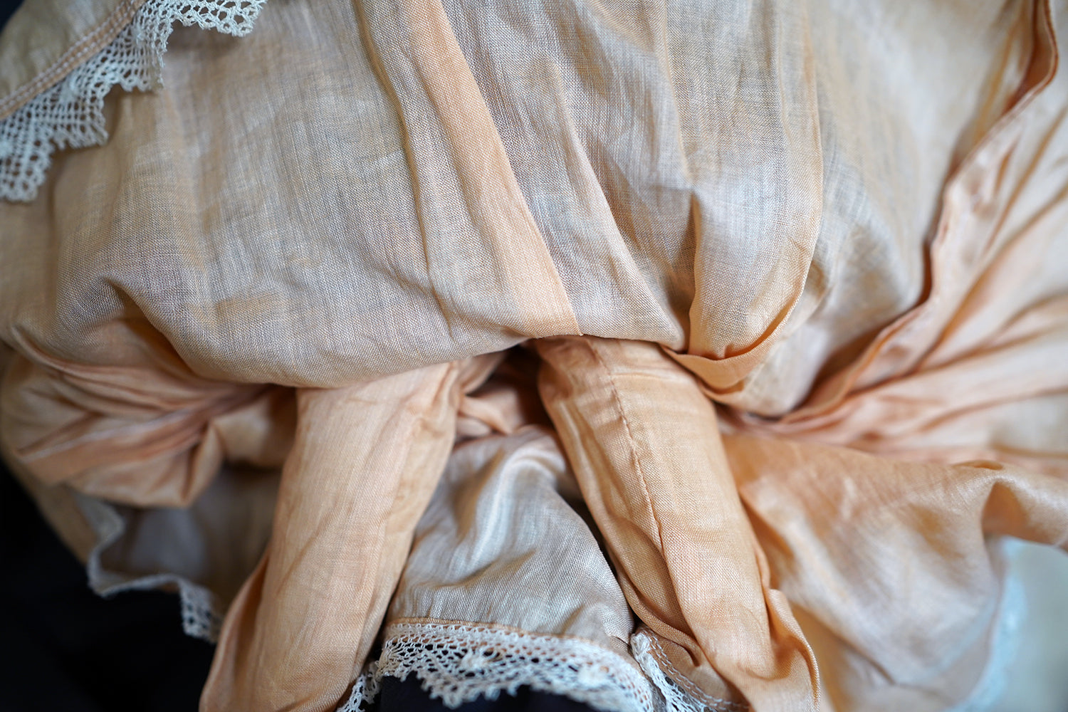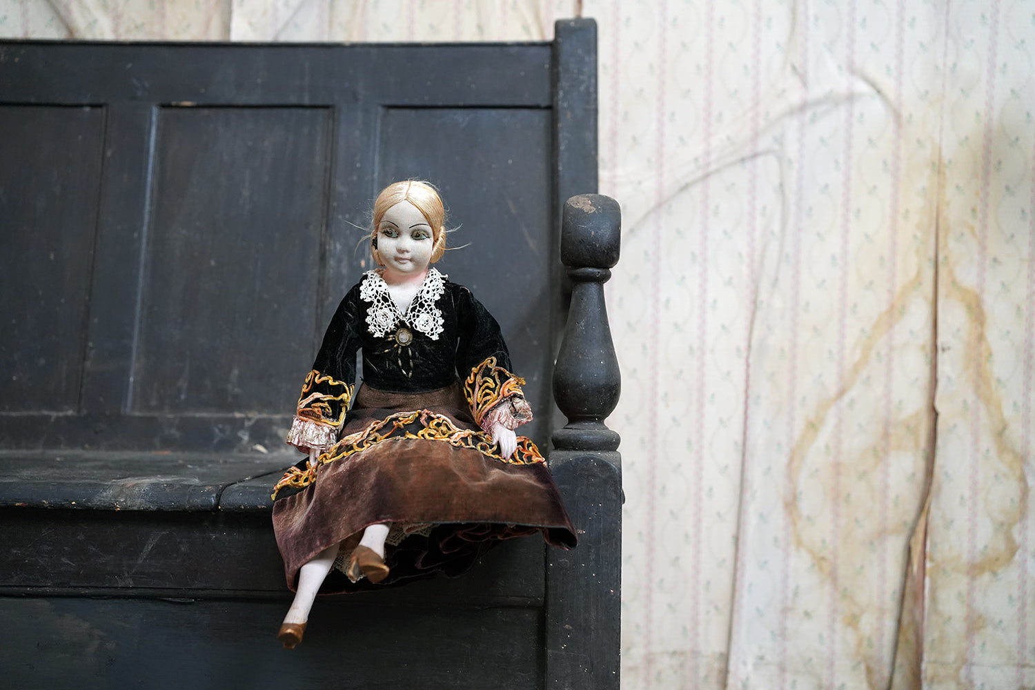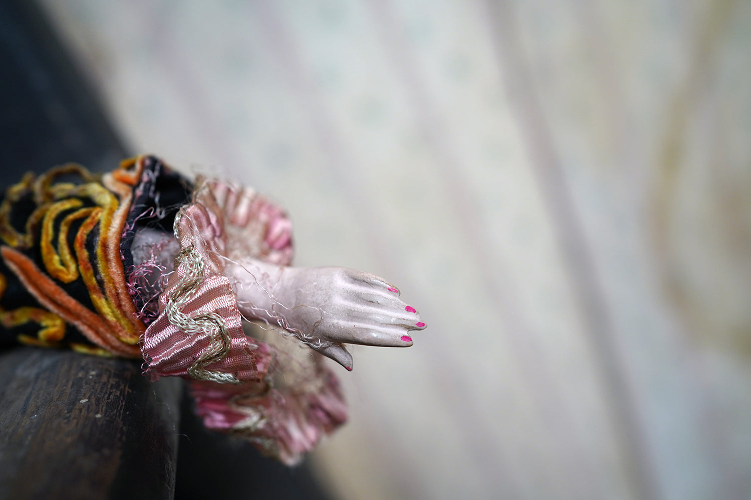 In completely original order, her costume is slightly tired as one would expect, with one taffeta sleeve being slightly loose, but present, and with some loss to the sequins, but she is completely original.