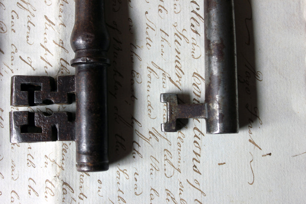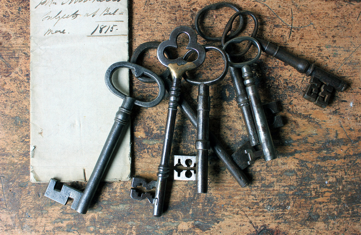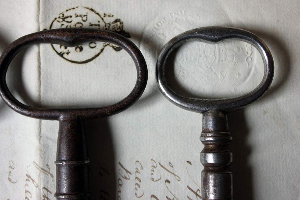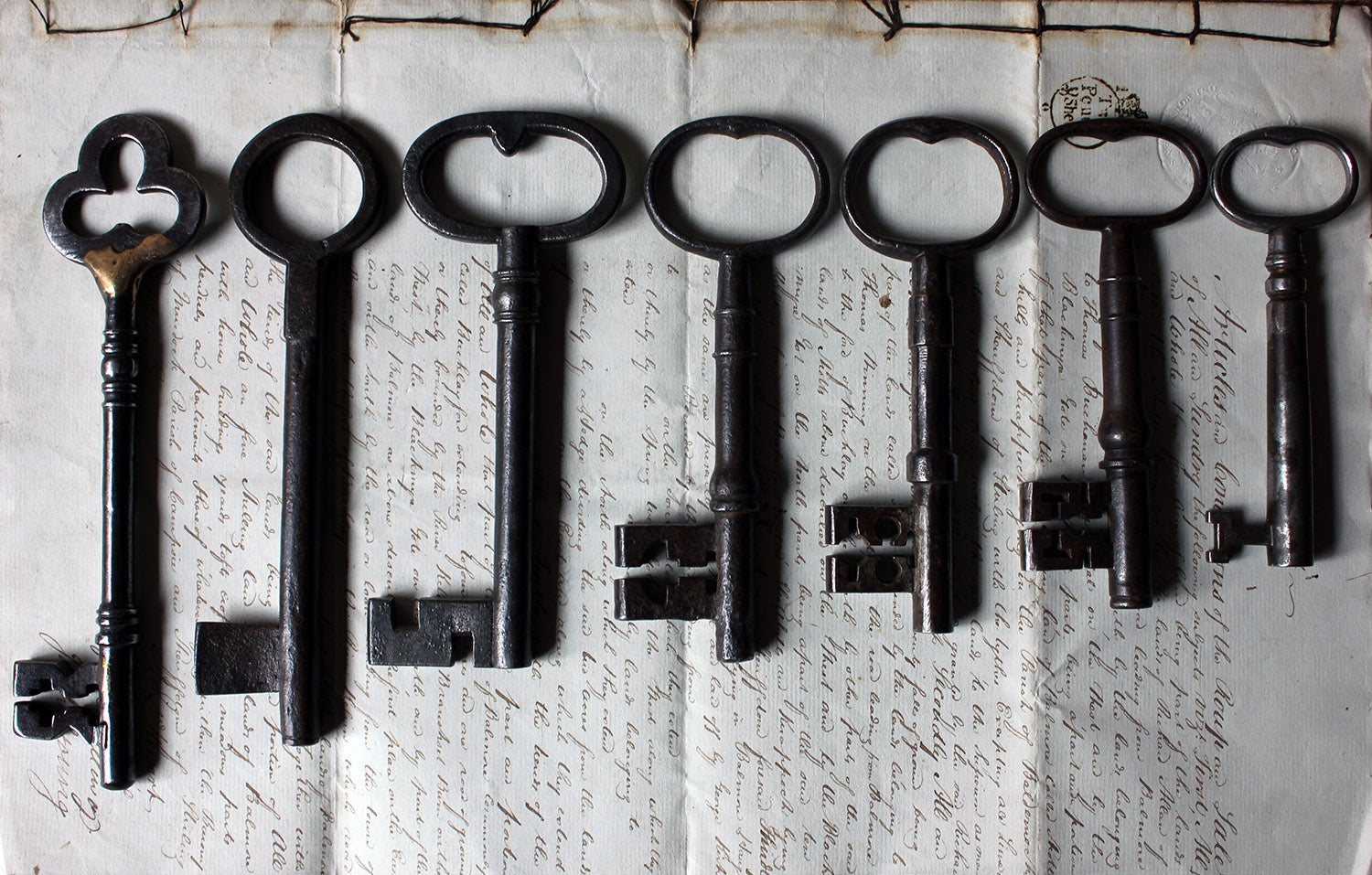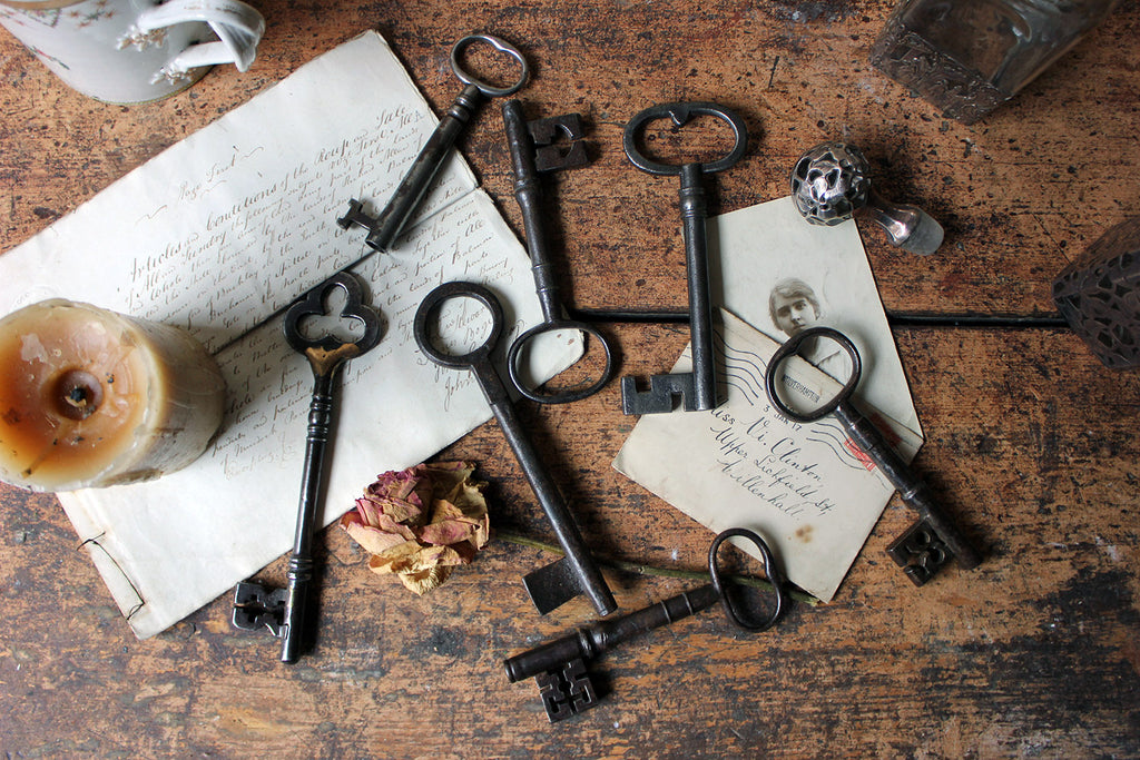 In folklore, keys had the power to cure the sick, tame unruly children, and catch one’s true love. Church keys were especially magical. The giant, heavy key, forged of iron by the blacksmith, could help alleviate or even cure illness.
