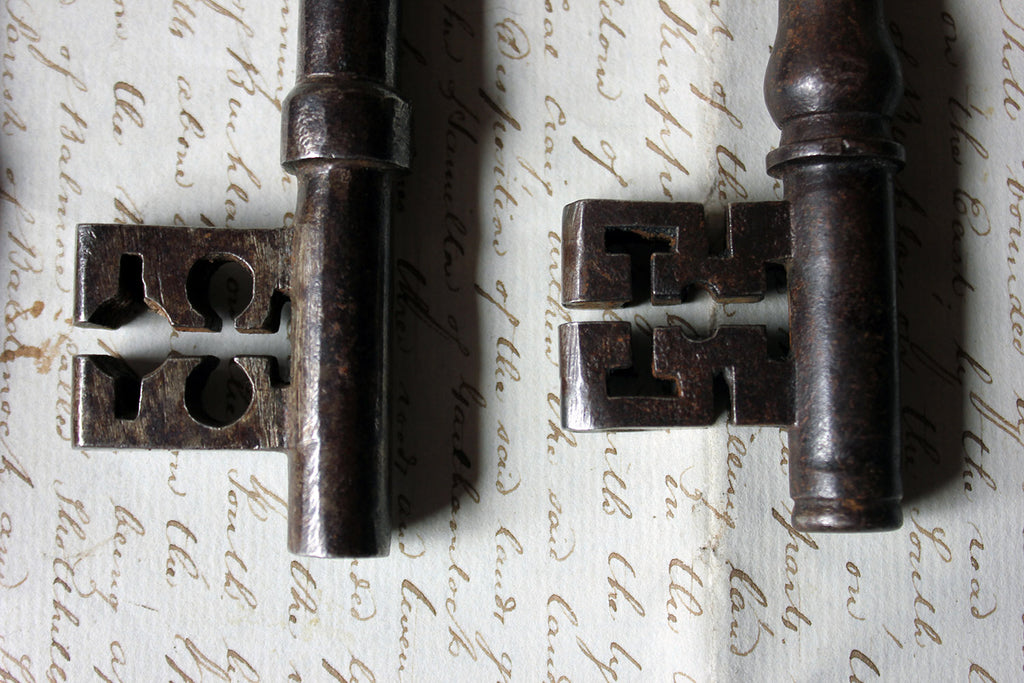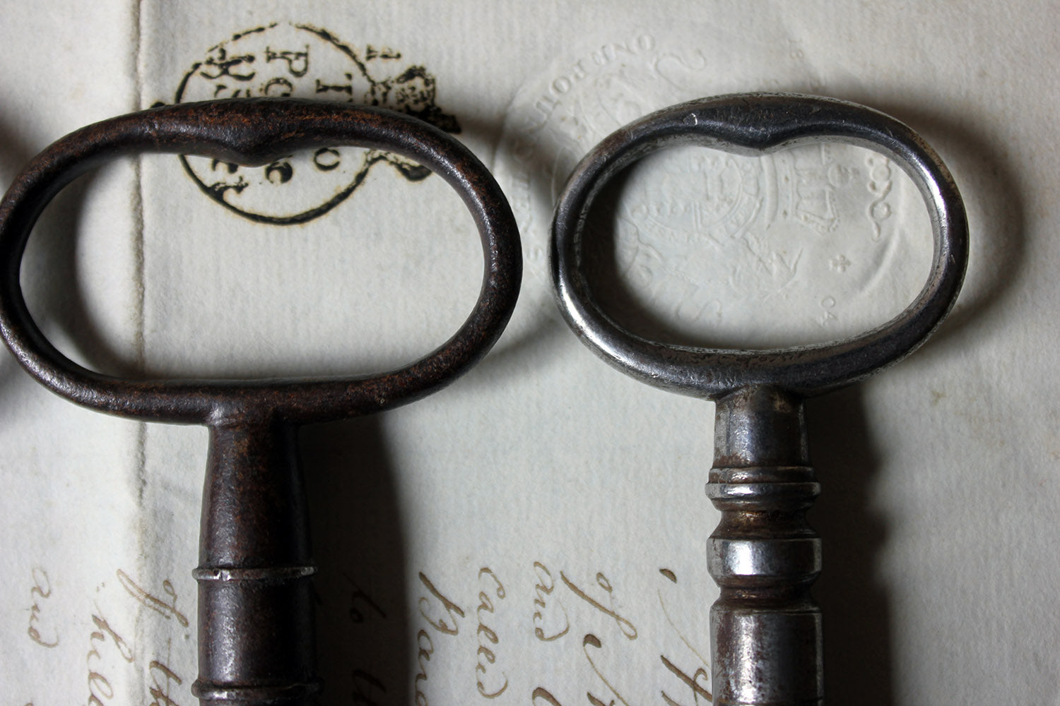 The keys are is all in good condition with slight rusting commensurate with age and no damage to report. Please refer to the photographs for a visual reference. The William IV church key shows a very old repair to the attractive trefoil bow.