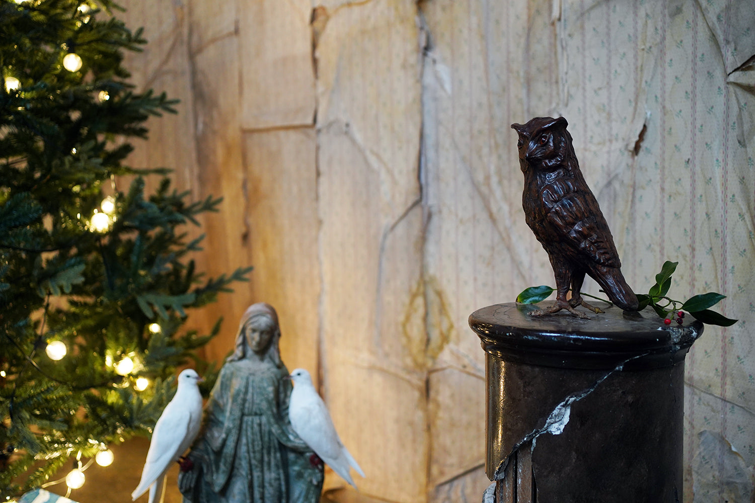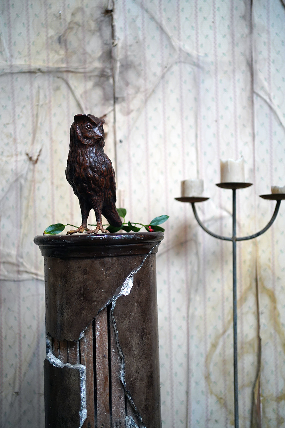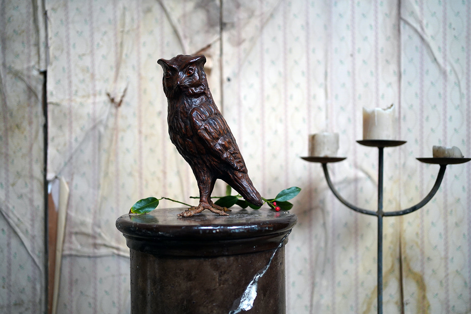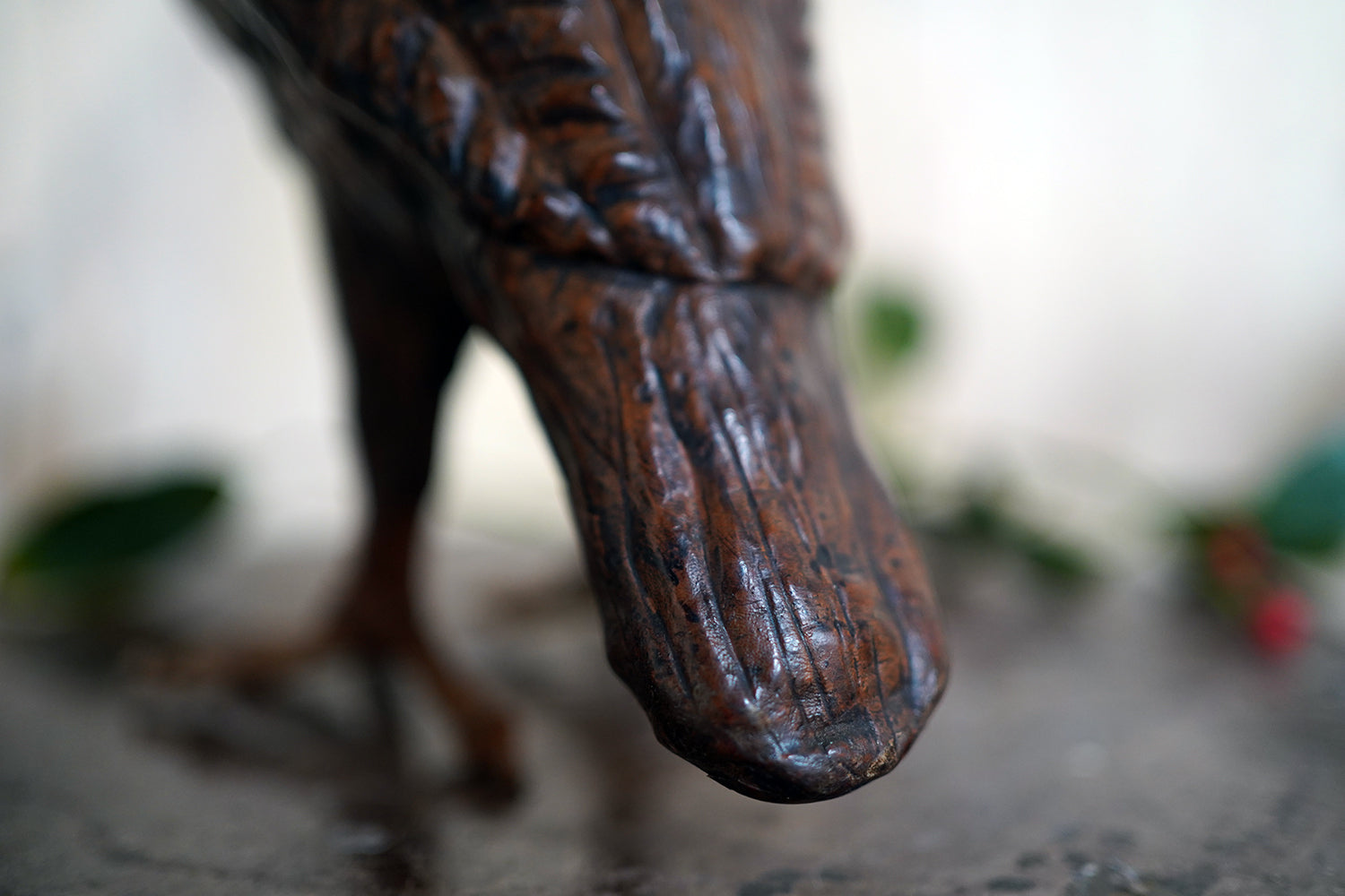 Leather animal figures of this type are most closely associated with the Arts & Crafts and Art Nouveau periods and are often linked to the decorative output of Liberty & Co. of London in the late nineteenth and early twentieth centuries. Liberty retailed a range of exotic and whimsical objects made from unconventional materials, including repoussé metal, carved wood, and leather, with Omersa creating their first leather pig in 1927, and frequently drew inspiration from nature and folklore. Owls, symbols of wisdom and nocturnal mystery, were particularly favoured motifs during this period with the likes of William Morris et al. Whilst appearing to be unsigned, the quality of modelling, choice of material, and sculptural confidence place this example firmly within that tradition.