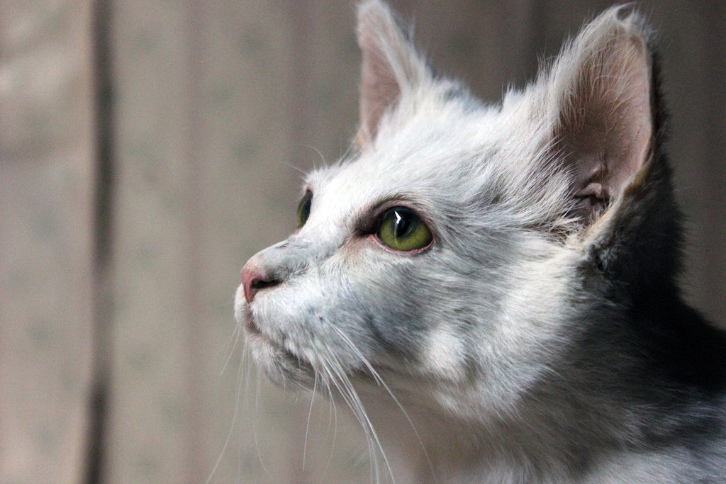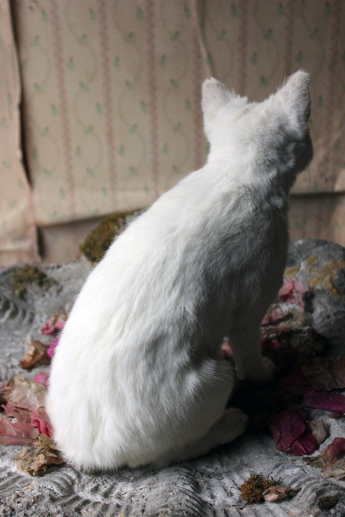 The taxidermy domestic adult house cat (Felis catus), with green eyes and white coat, wonderfully poised in a freestanding and attentive seated position, the whole surviving from the twenty first century in super overall condition, preserved by G. Tatterton Taxidermy of Yorkshire.