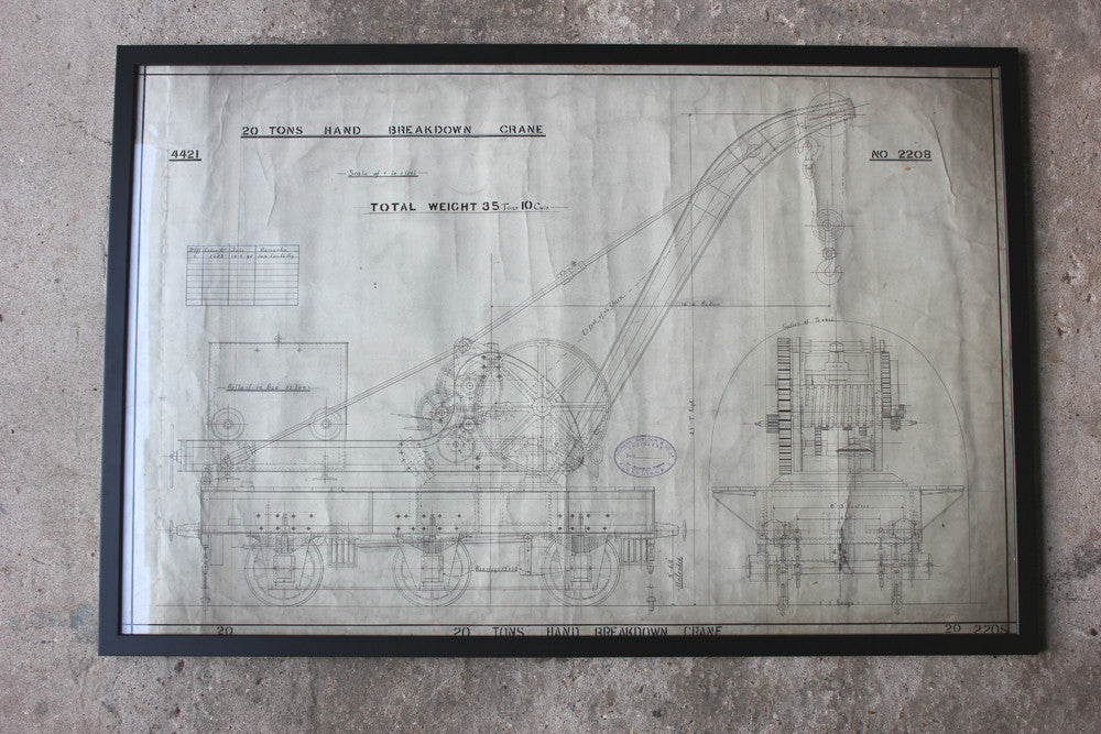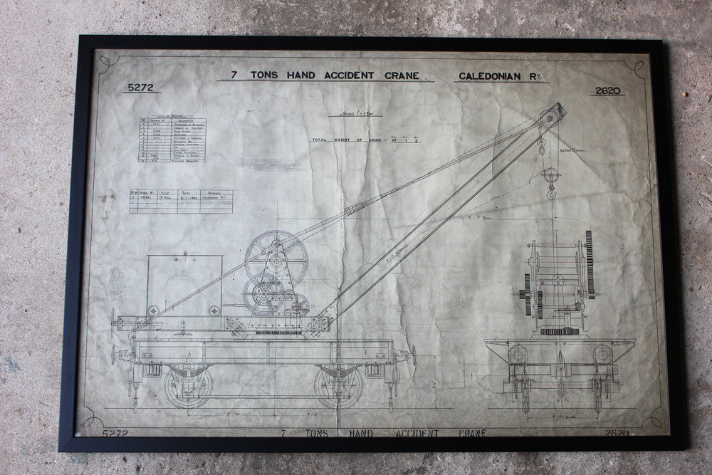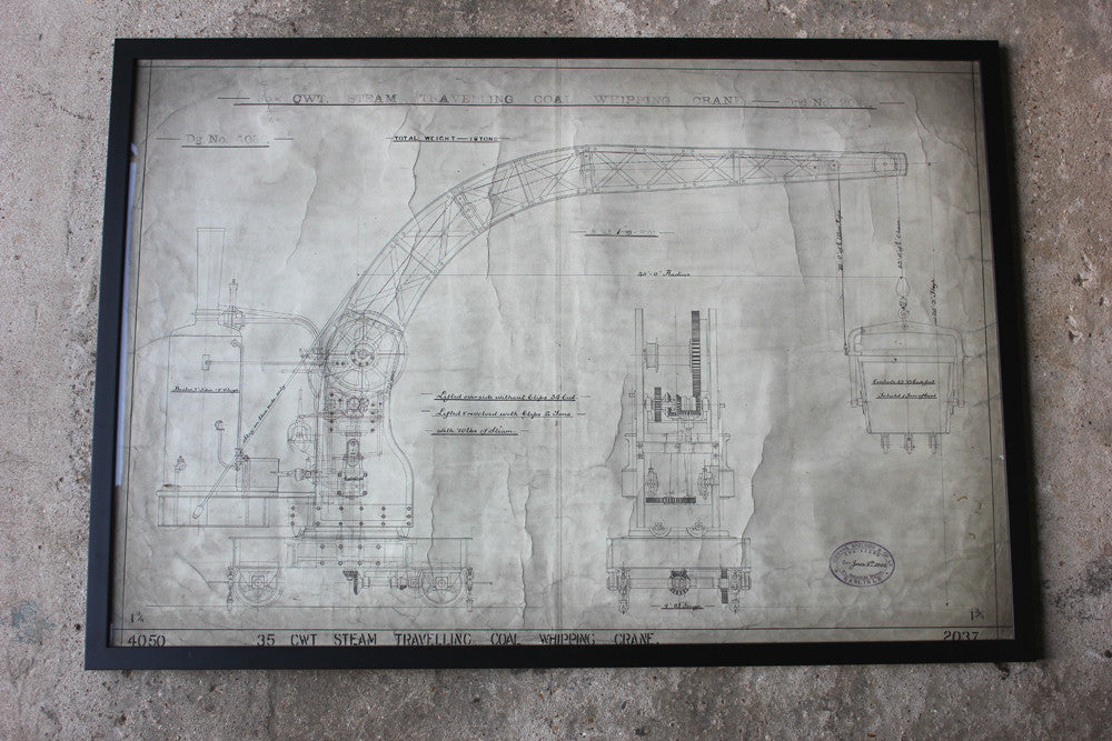 A Superb c.1896-1903 Set of Five Craftsman’s Scale Illustration Plans for Railway Cranes Prepared by Cowans Sheldon & Co