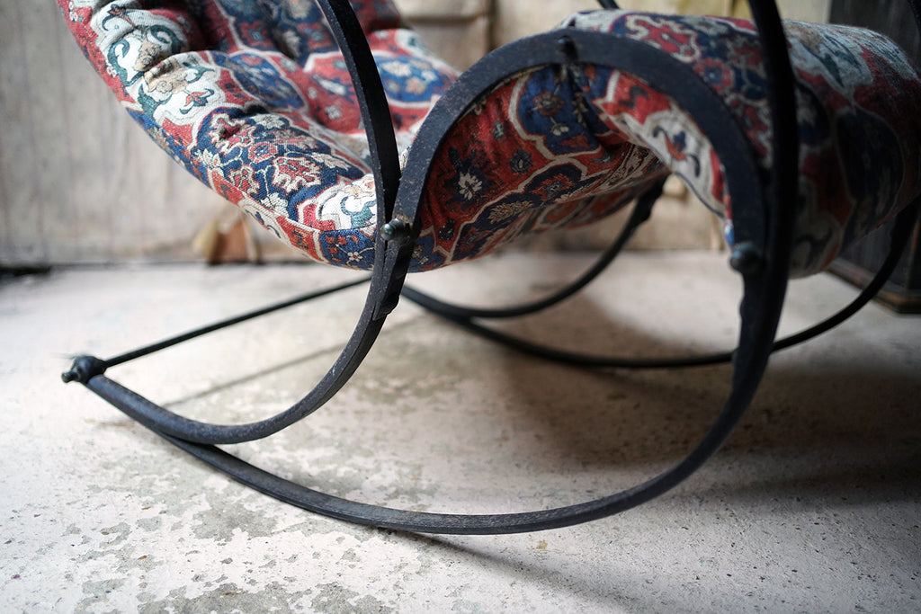 Metal was originally used in the making of chairs in Paris by the company, Gandillot & Cie, from circa 1828 onwards. Both iron and steel furniture became progressively more popular over the course of the 19th century both across Europe and America. A similar version belongs to the Victoria and Albert Museum in London.
