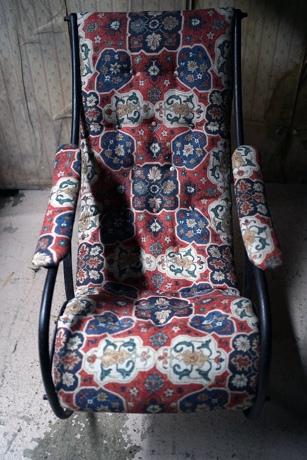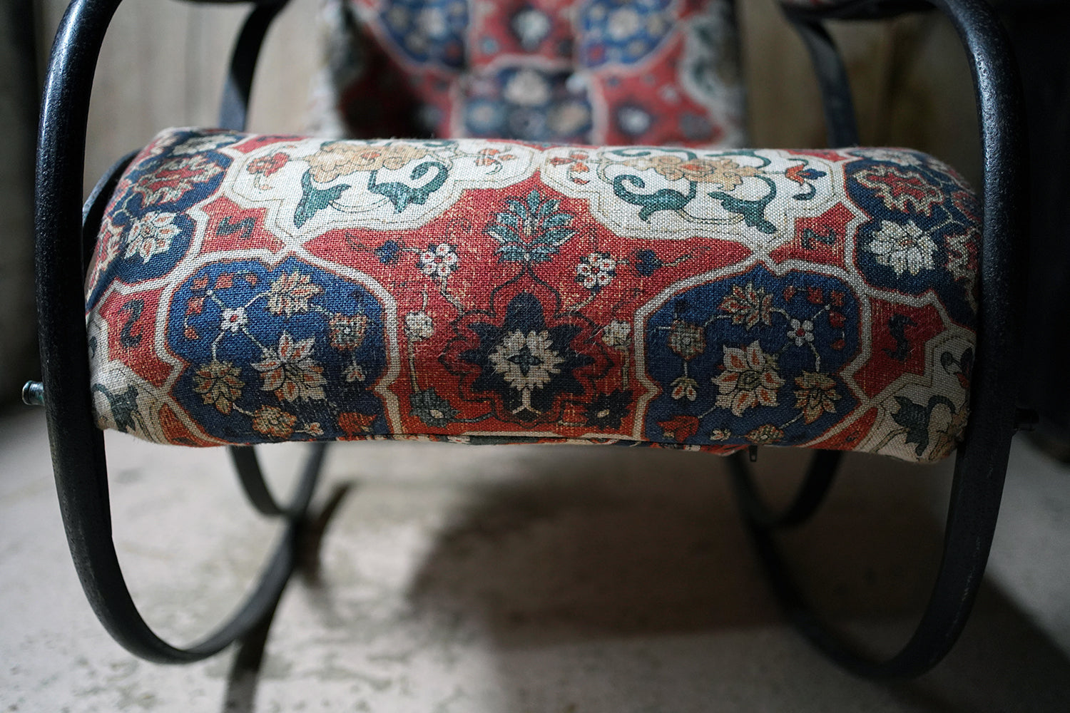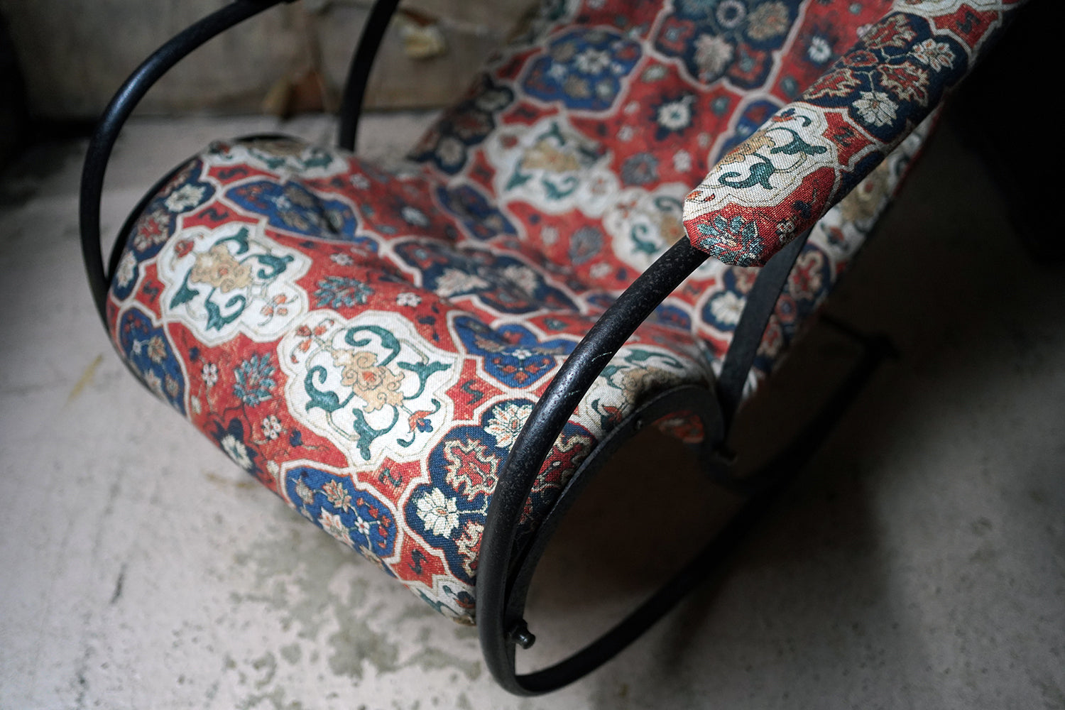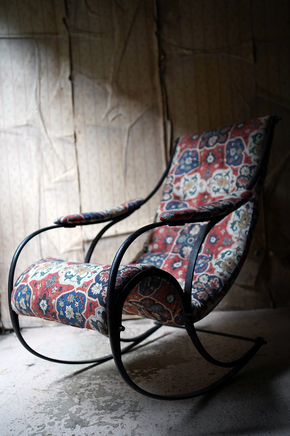 The rocking chair is in good overall order and has been upholstered by our upholsterer recently with the frame being tightened.