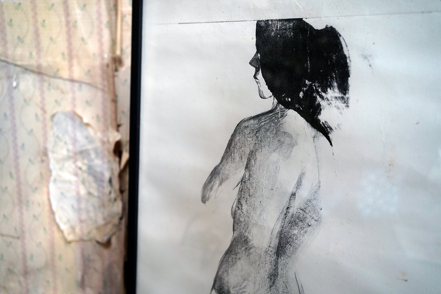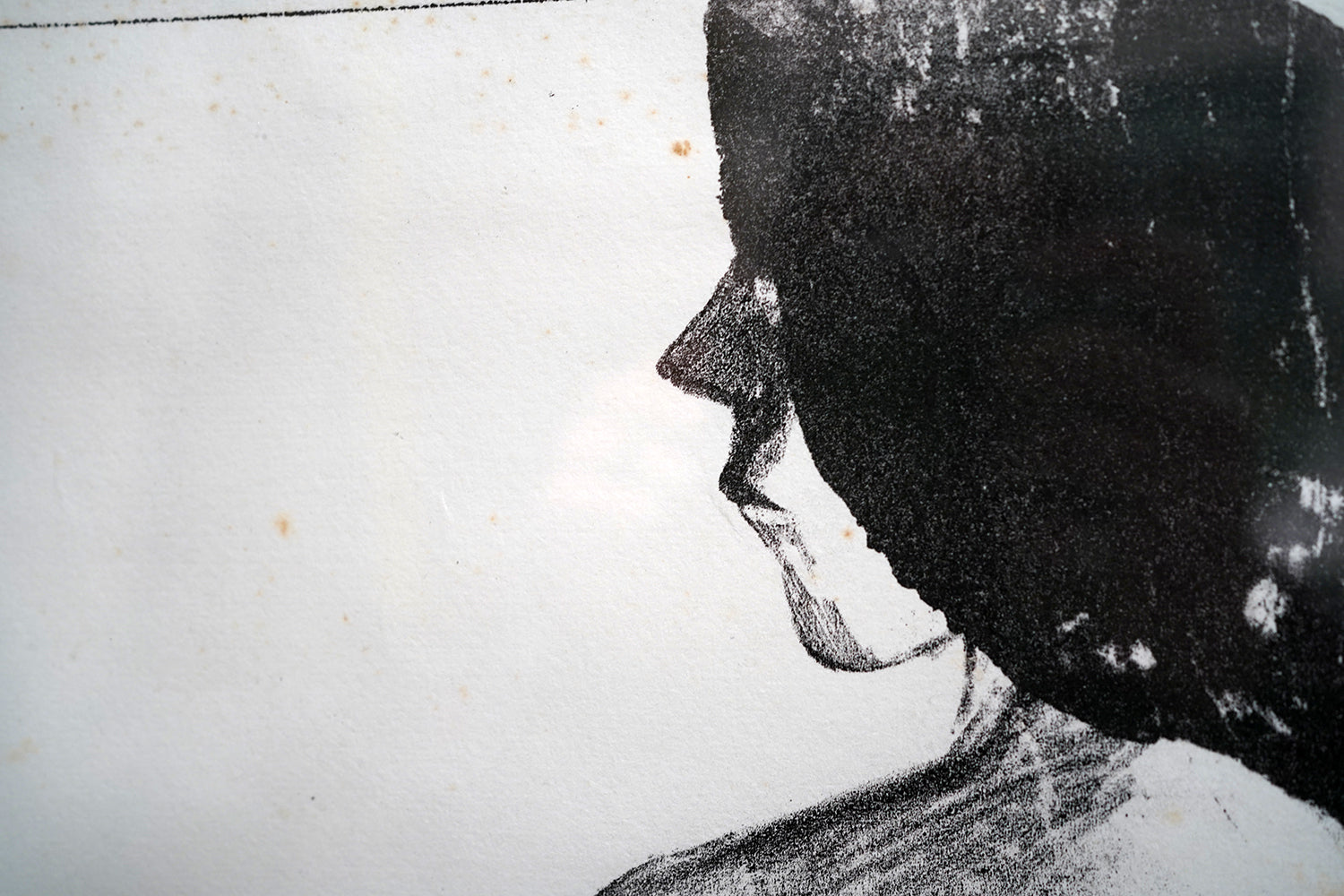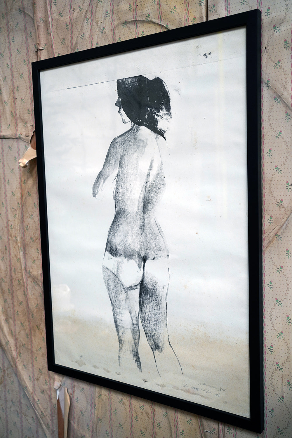 William “Bill” Moorman was an English draughtsman associated with artistic and literary circles in Gloucestershire during the mid-20th century; his work spans charcoal, ink, and monotype, often with a distinctly sculptural approach to the human form. This example carries resonance for its place in the orbit of the celebrated writer and poet Laurie Lee (1914–1997); author of Cider with Rosie and long-time resident of Slad, together with his wife Kathy, who were known to receive personal works from neighbouring and visiting artists. The warm dedication suggests a close personal connection and places the drawing firmly within the private creative world that surrounded the Lees in the 1970s.