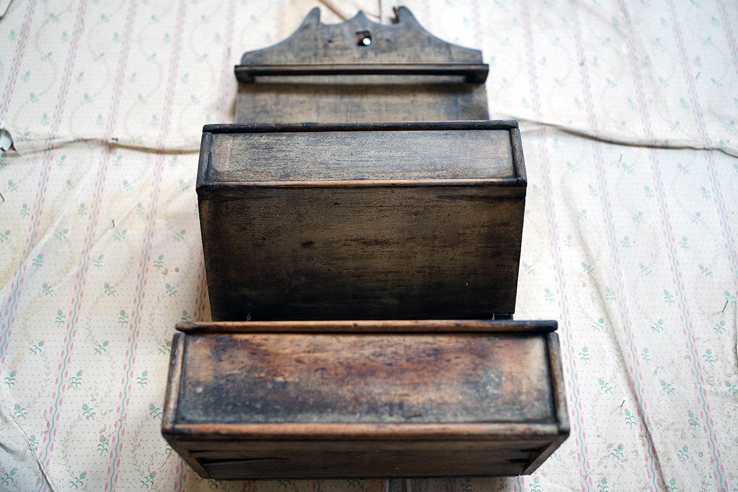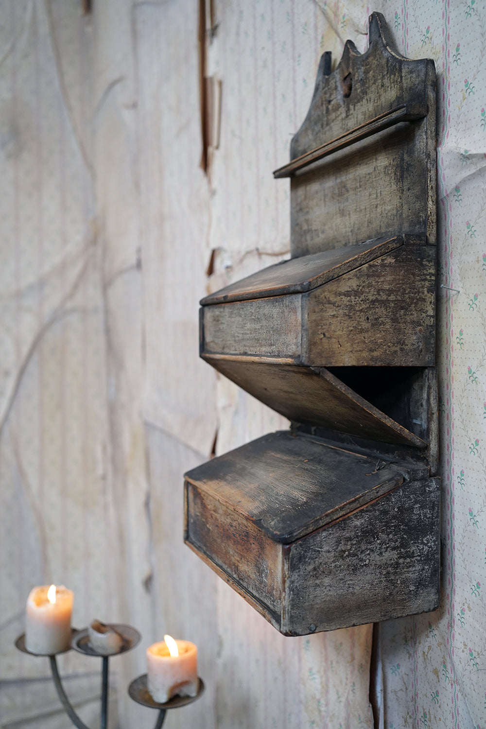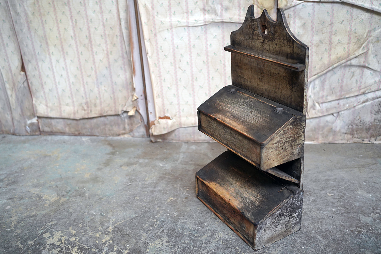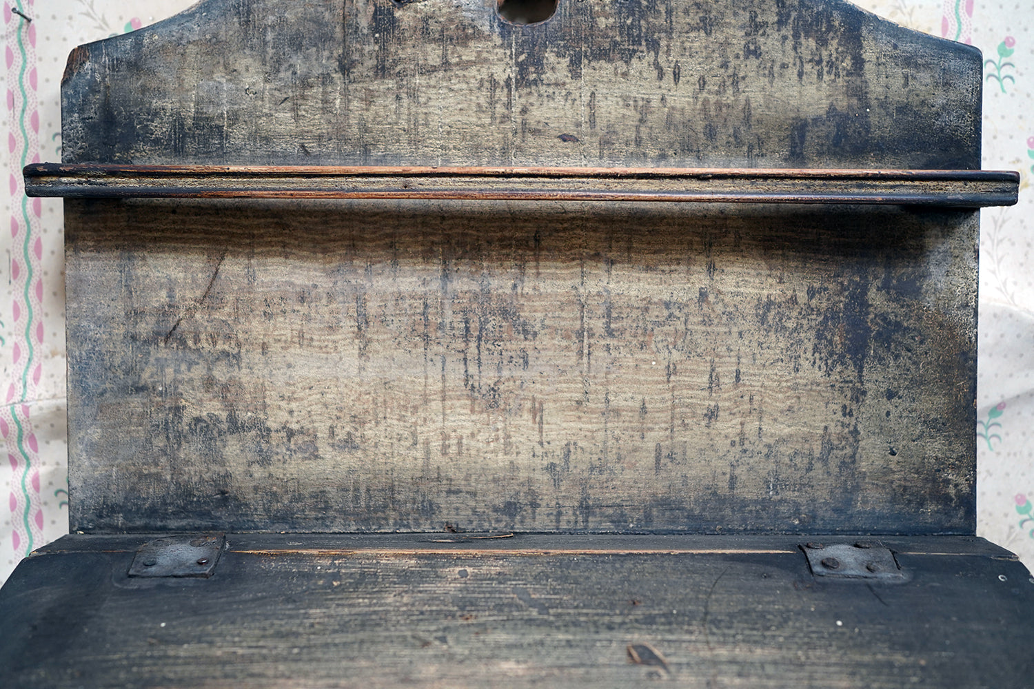 In super condition, she is very honest and a bears a great colour. Designed to be hung on the wall at the shaped top, but she also free stands well on a table. The provincially made carcass has a wonderfully textured patina, with a host of character commensurate with its age and use and it complete and undamaged.