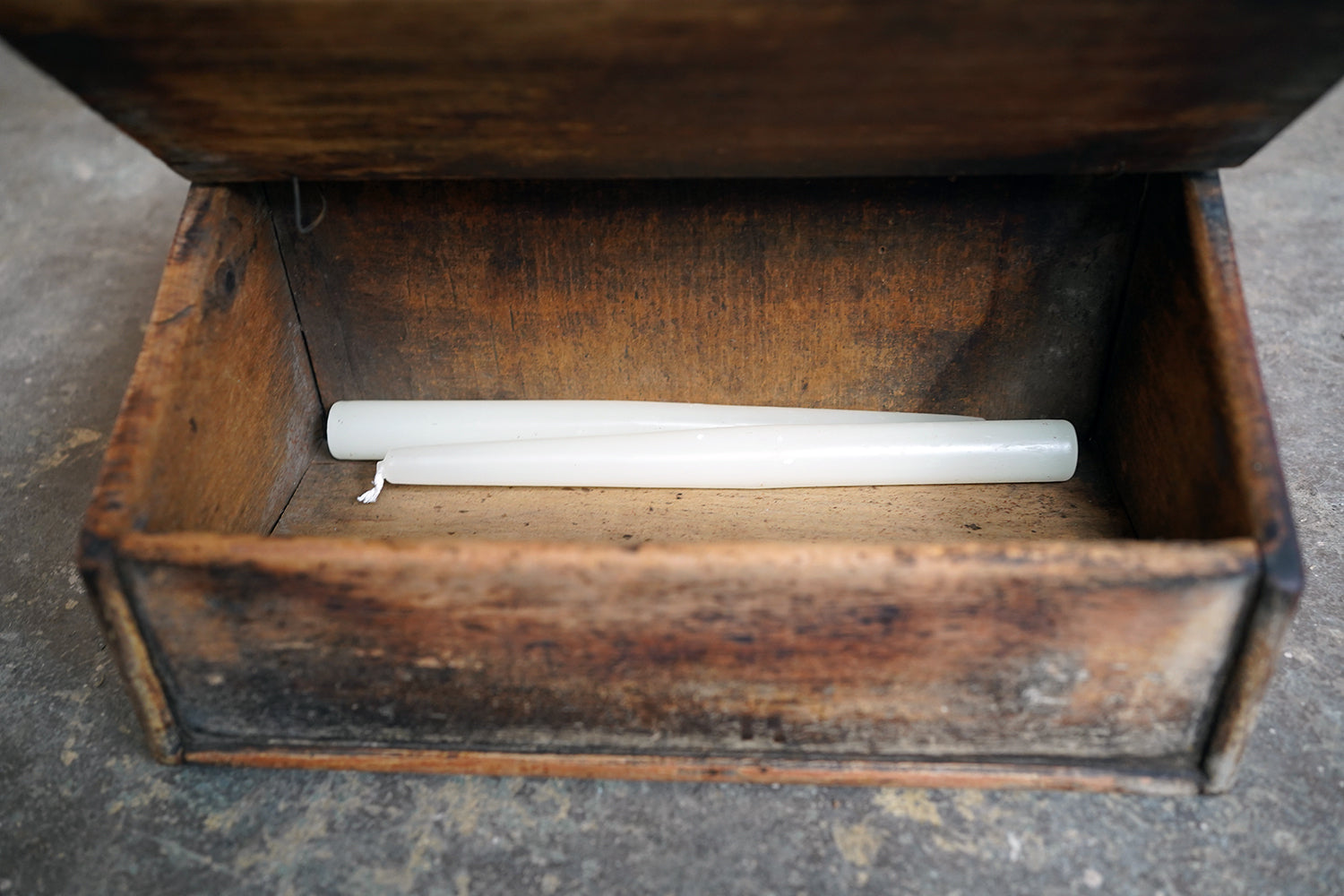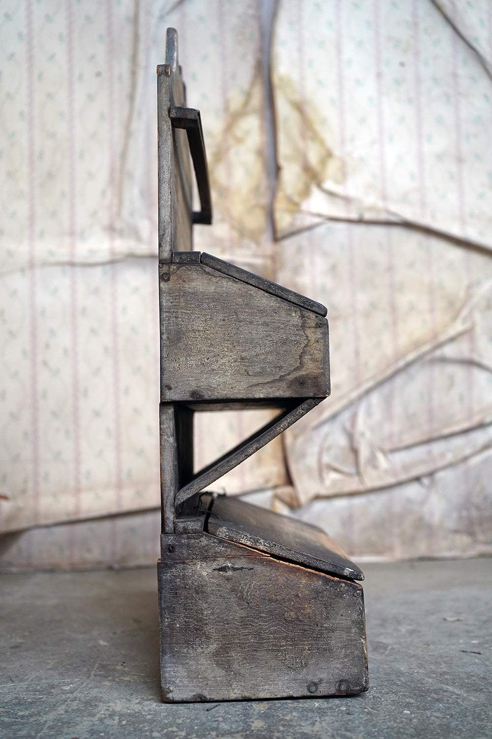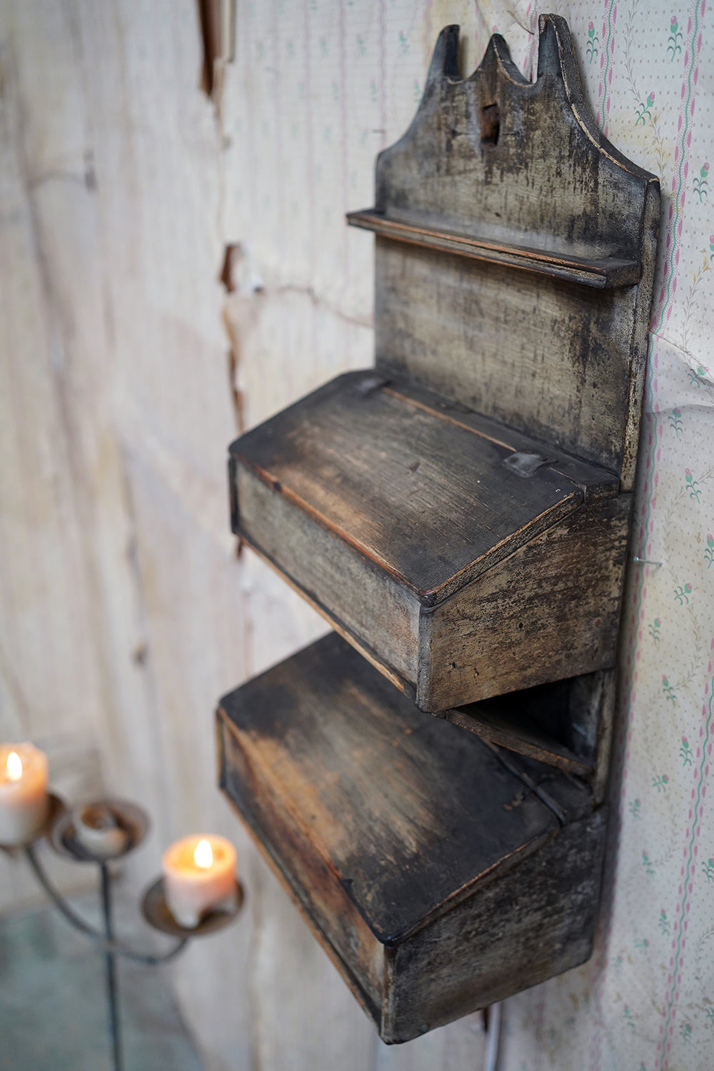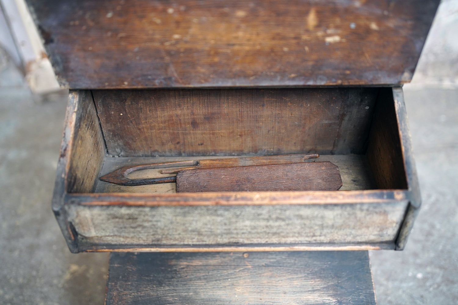 In super condition, she is very honest and a bears a great colour. Designed to be hung on the wall at the shaped top, but she also free stands well on a table. The provincially made carcass has a wonderfully textured patina, with a host of character commensurate with its age and use and it complete and undamaged.