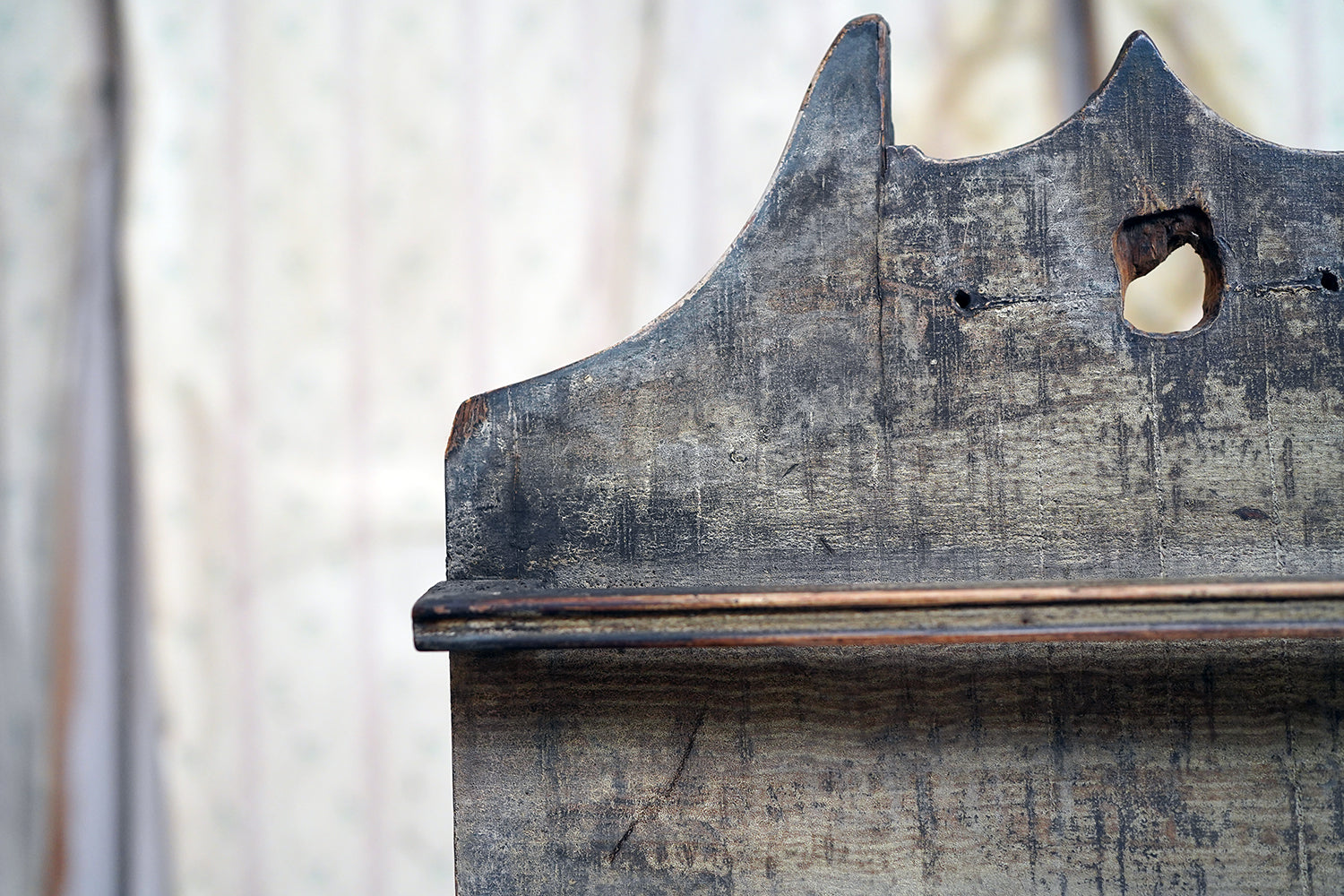 Traditionally, a bride received a spoon rack from her new husband, and it remained her personal possession. Scandinavian examples have chip carving, and the racks were usually painted; this example showing the original paintwork and a very unusual design for a Georgian piece.