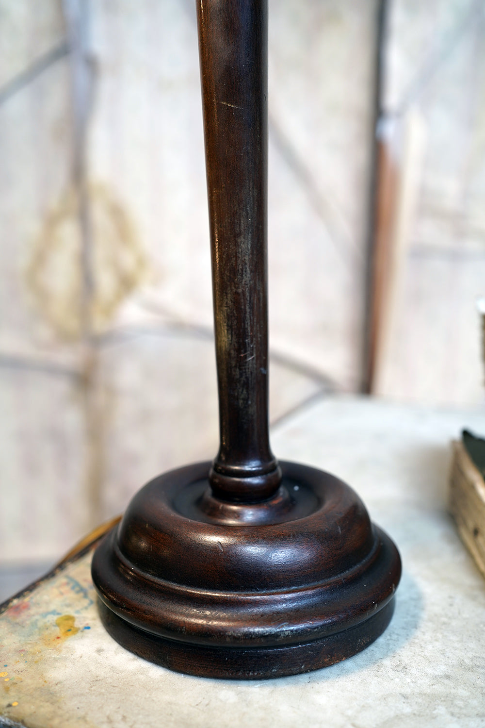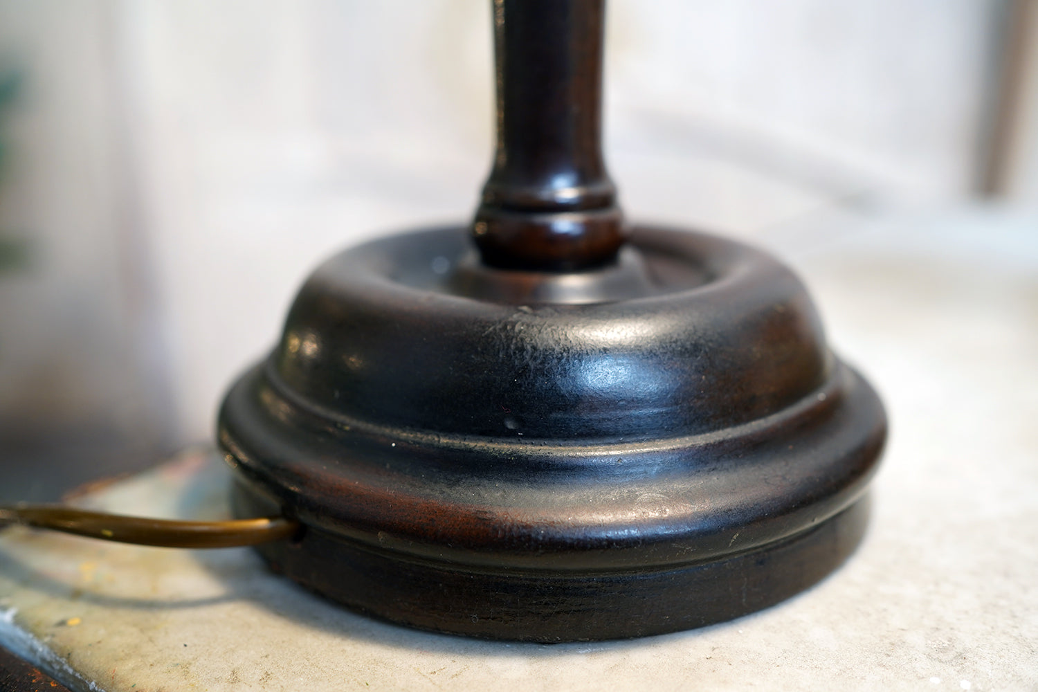 The lamp is in operational order, having recently been re-wired and the whole has no damages with the carving having taken on a nice warm glow and not having not been over polished.