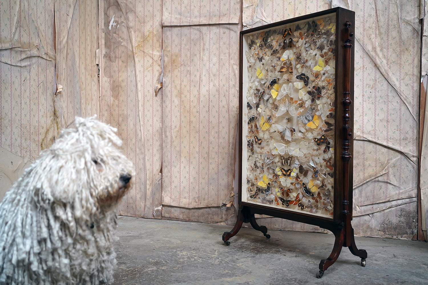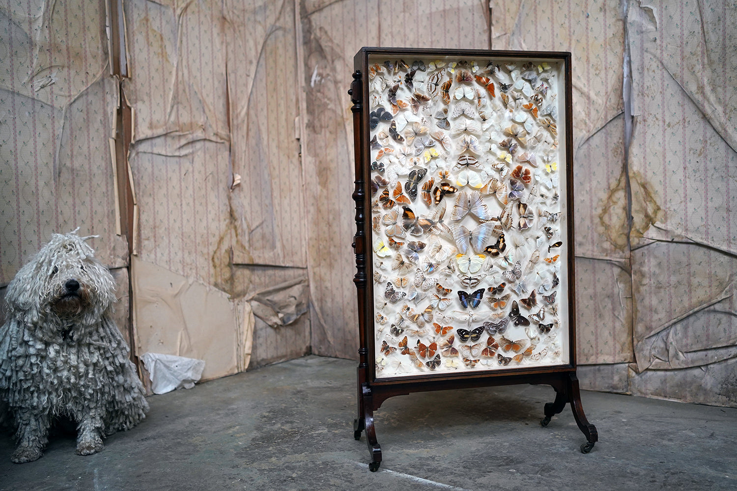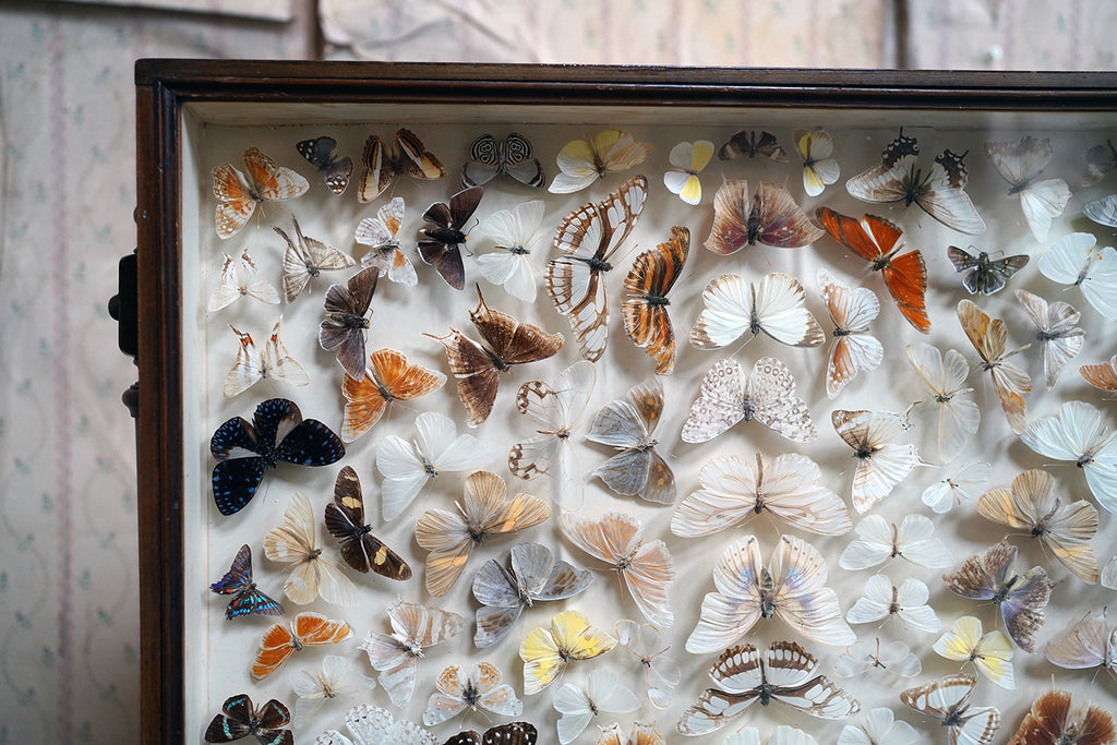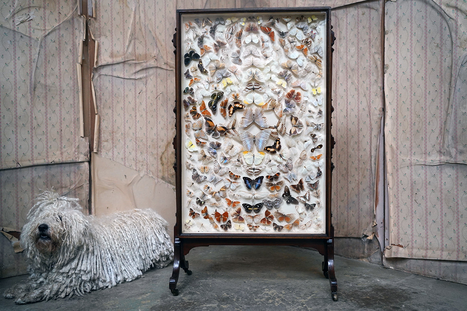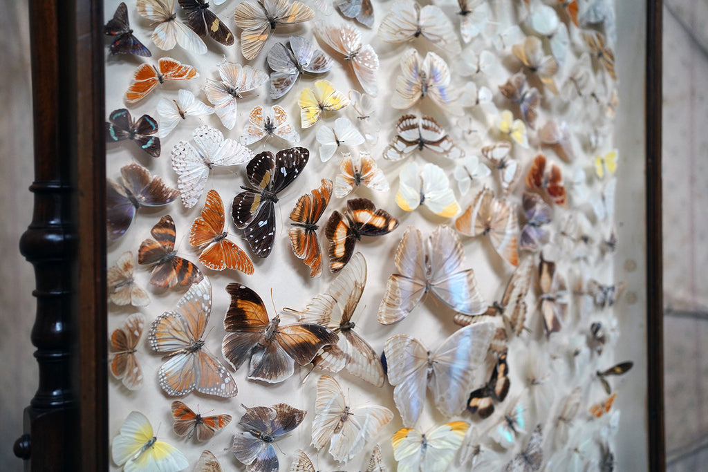 Such decorative screens reflect the late Victorian and Edwardian fascination with natural history, with examples often supplied by specialist dealers such as Henry R. Hope & Co. or Watkins & Doncaster, who prepared butterfly cases for both high-end domestic interiors and museum display. In terms of cabinetmaking style, the turned supports and splayed legs on castors are very much in line with mid–late 19th century English cabinet work, not dissimilar to Gillows-inspired furniture.