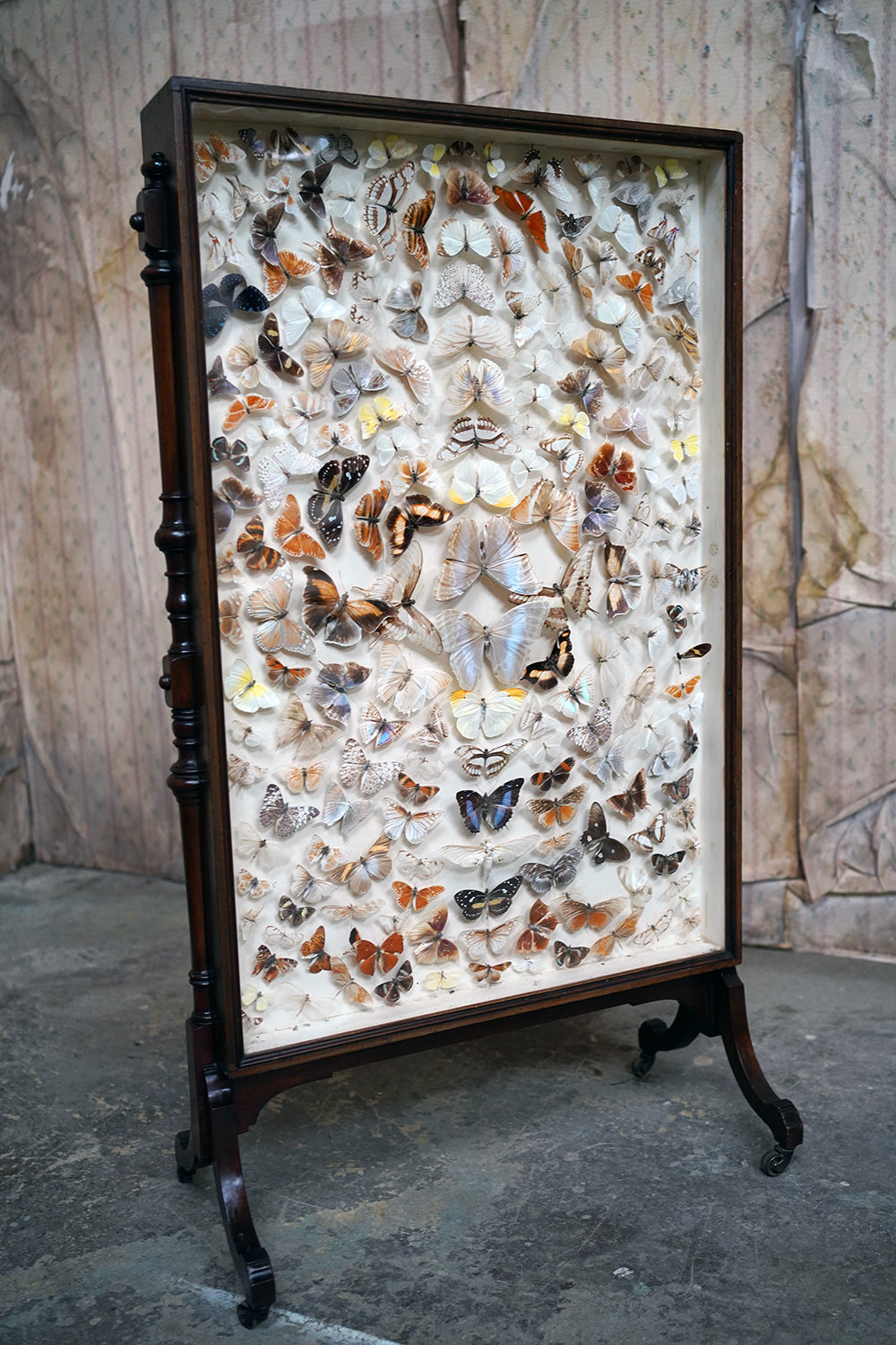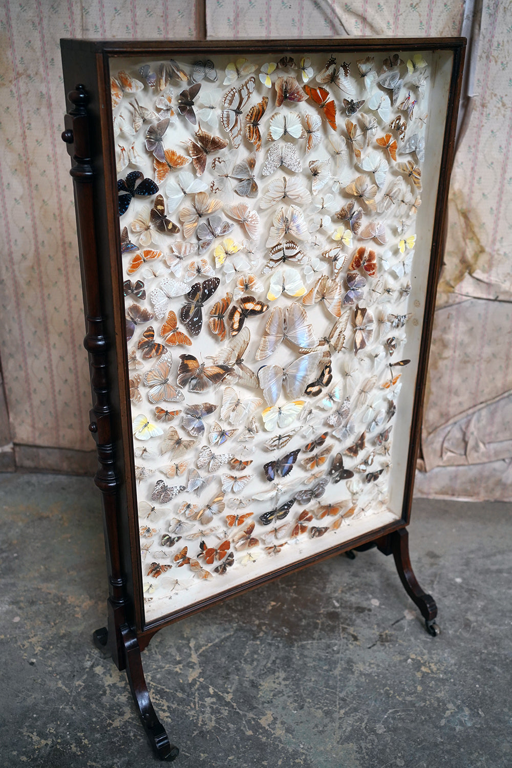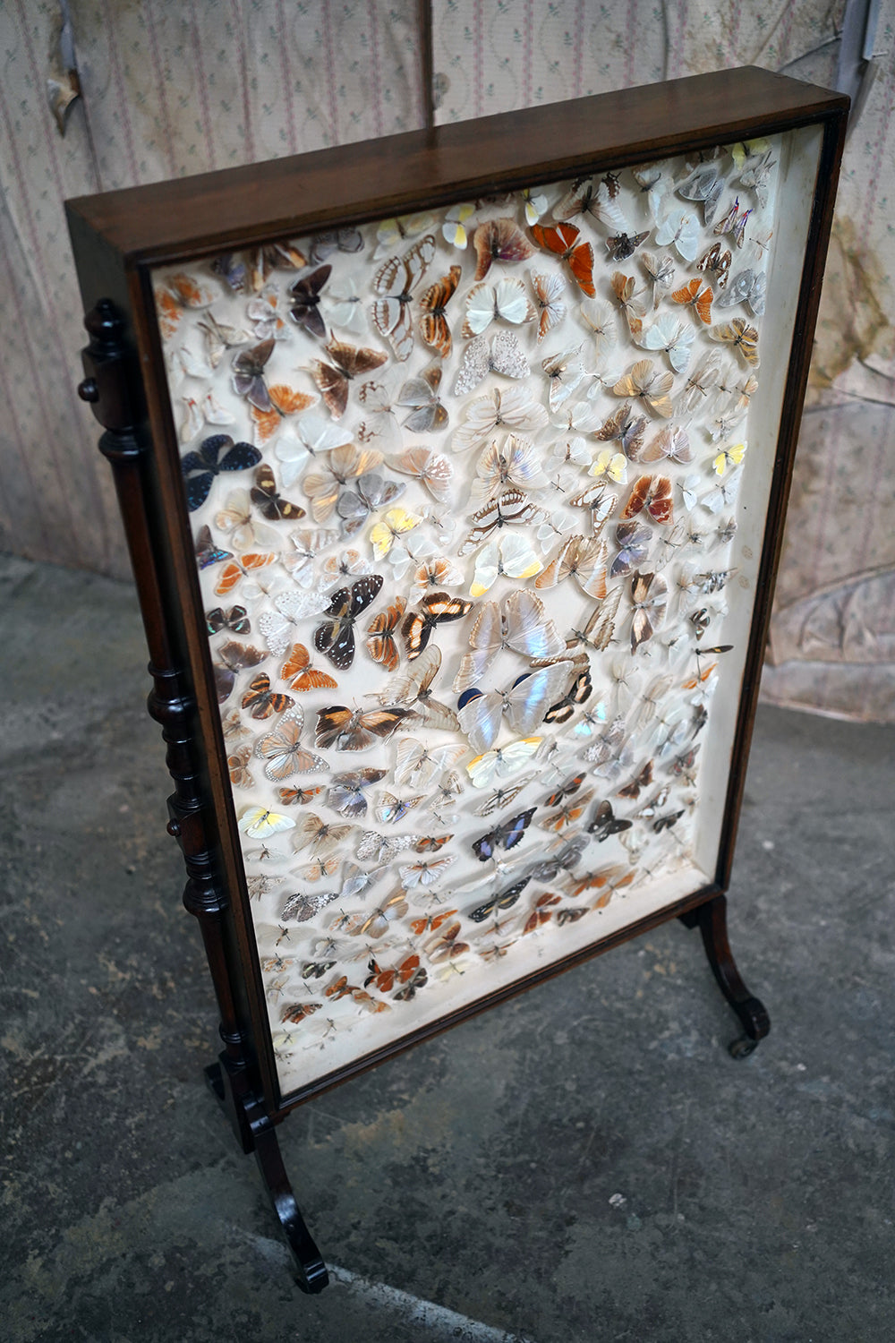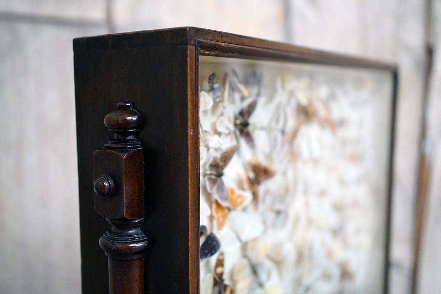 A Fine Victorian Taxidermy Butterfly-Mounted Cheval Fire Screen c.1880; Ex Pitt Rivers Museum