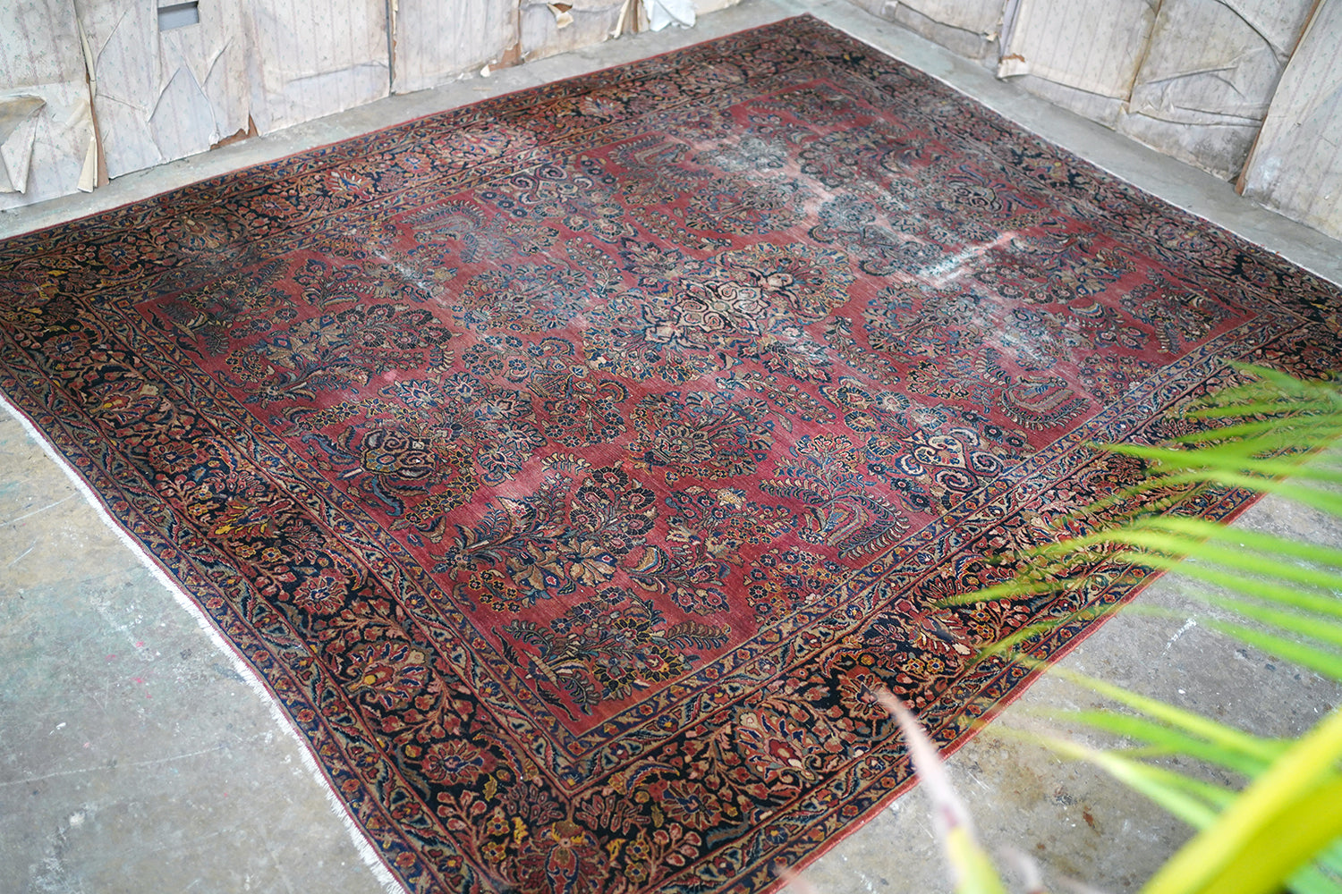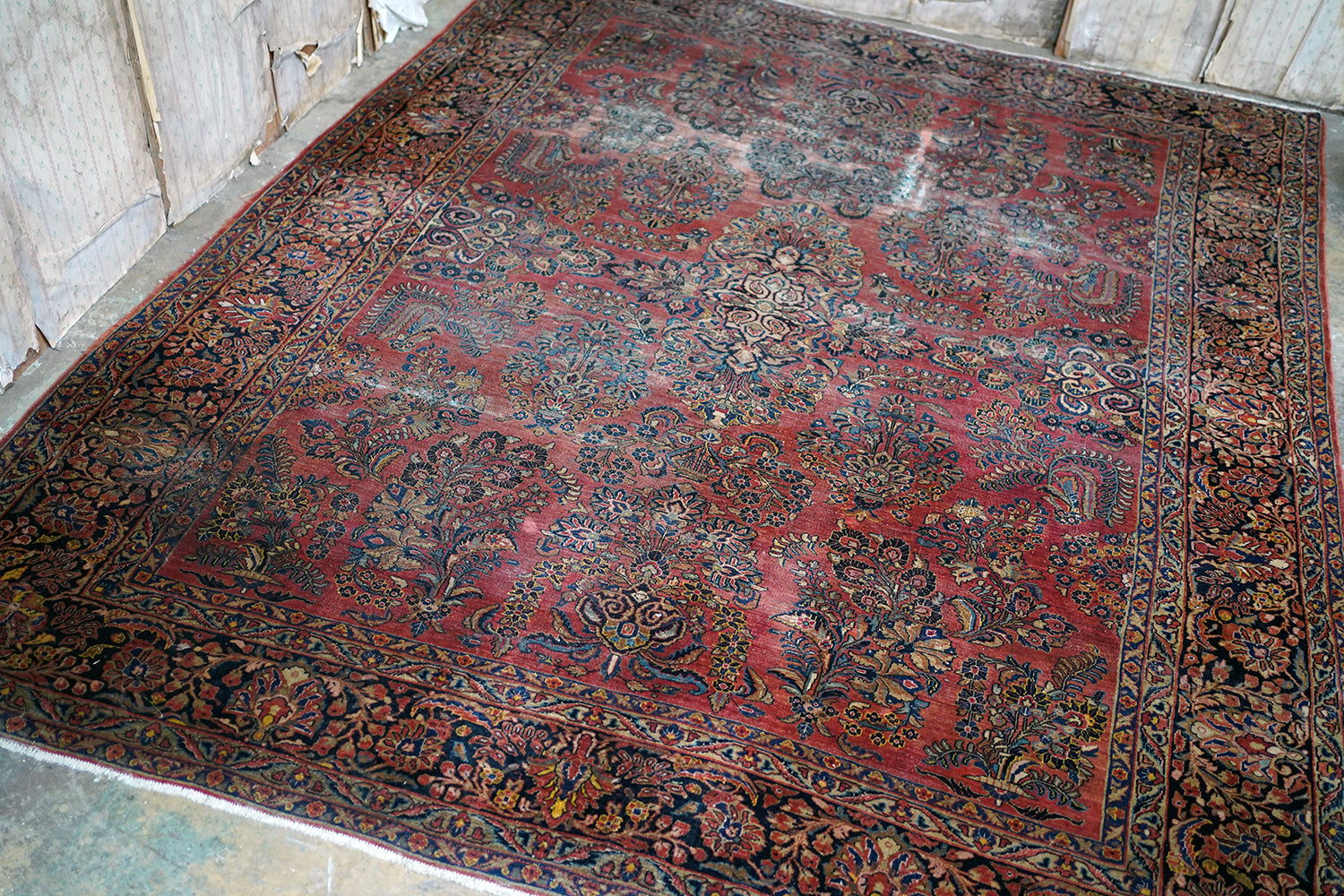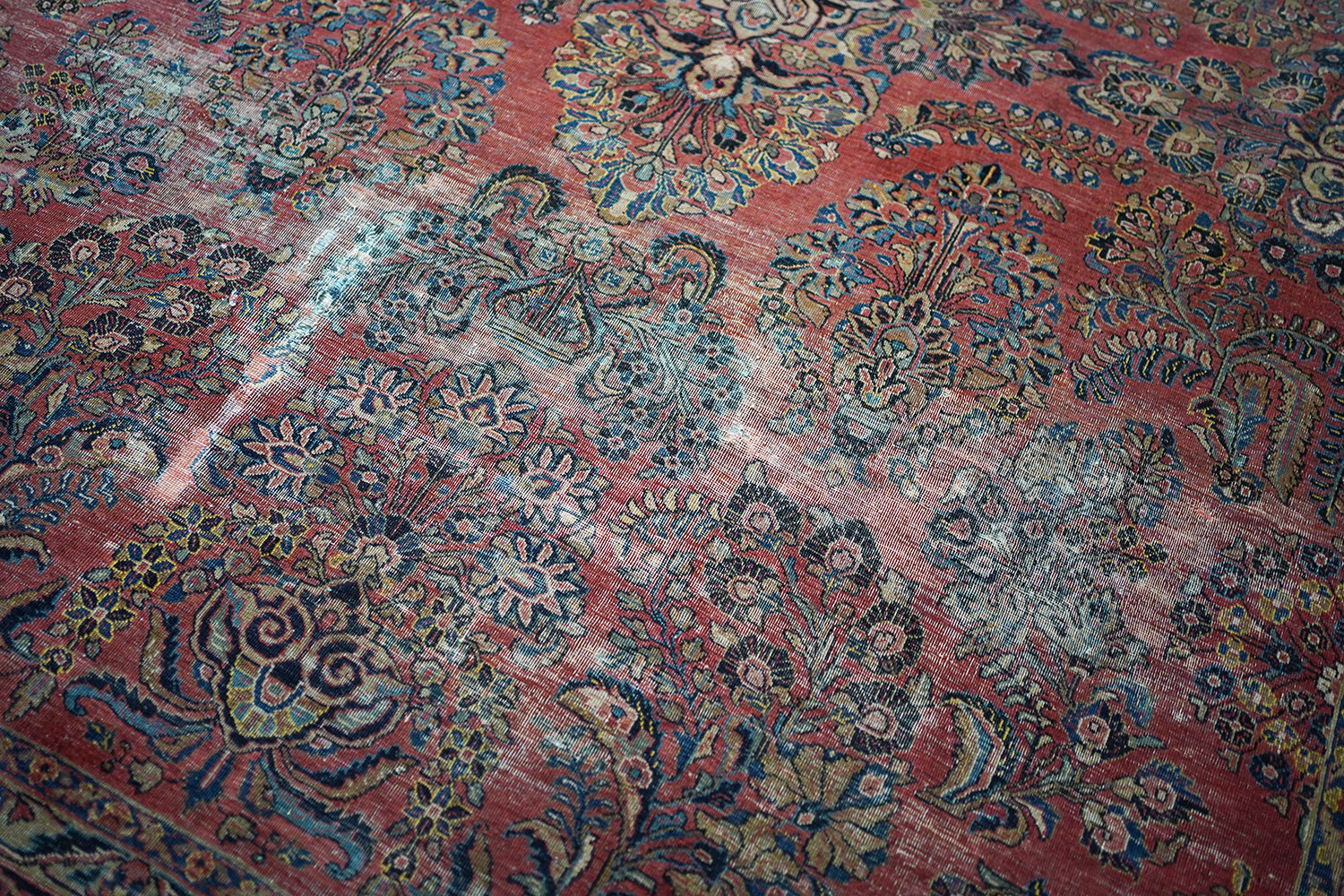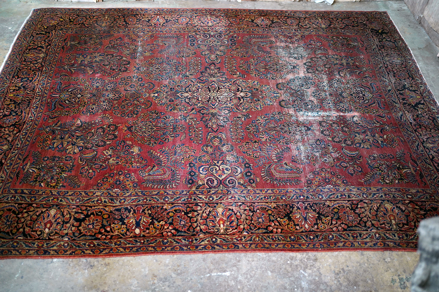 Sarouk (sometimes spelt Saroukh) is a city west of Kashan. They are fine, bold rugs with hard backs; and it’s not unusual to find them with breaks and tears because of this hardness. The colours are usually strong, contrasts great. They are made with a Sehna knot and are usually very fine. The Sarouk and Kashan may be distinguished from all others by their short velvety nap; dark rich colours; fields of graceful, foliated stalks and floral forms resting on concentric medallions; and the fine, firm texture of the weave.