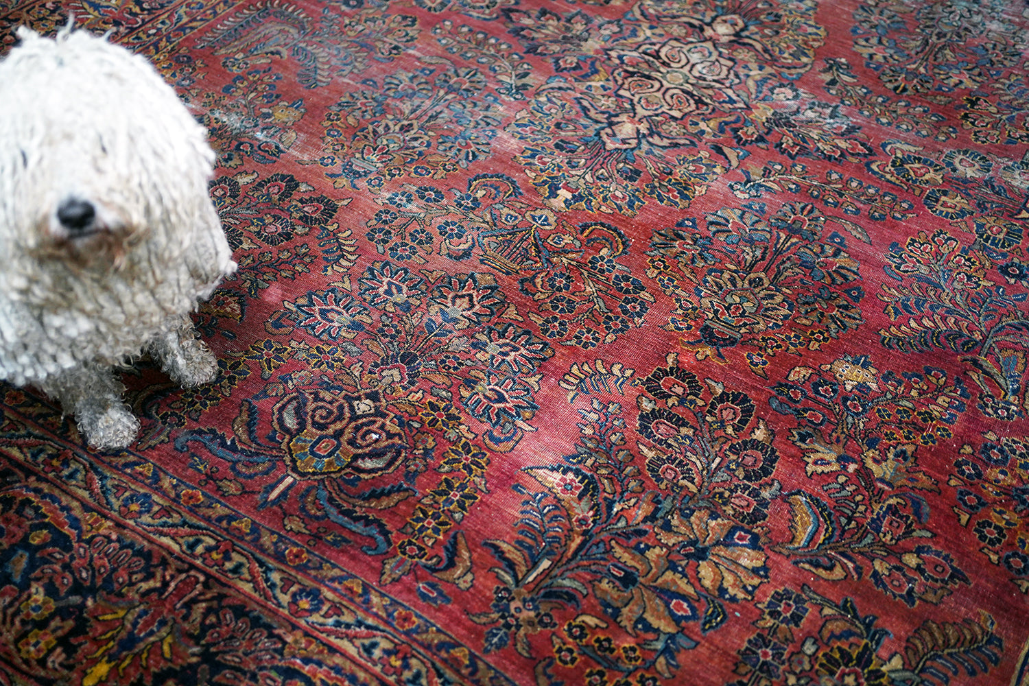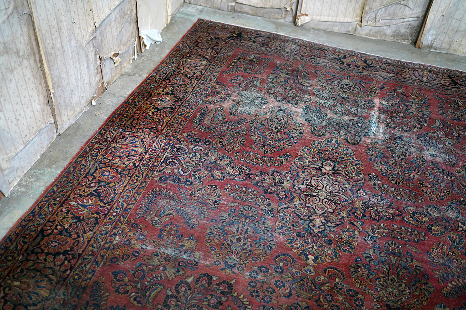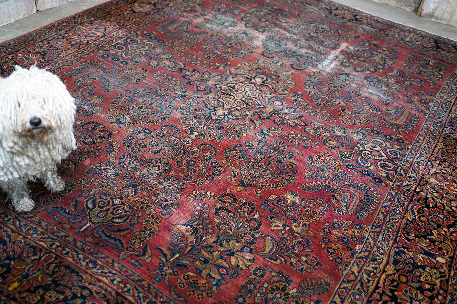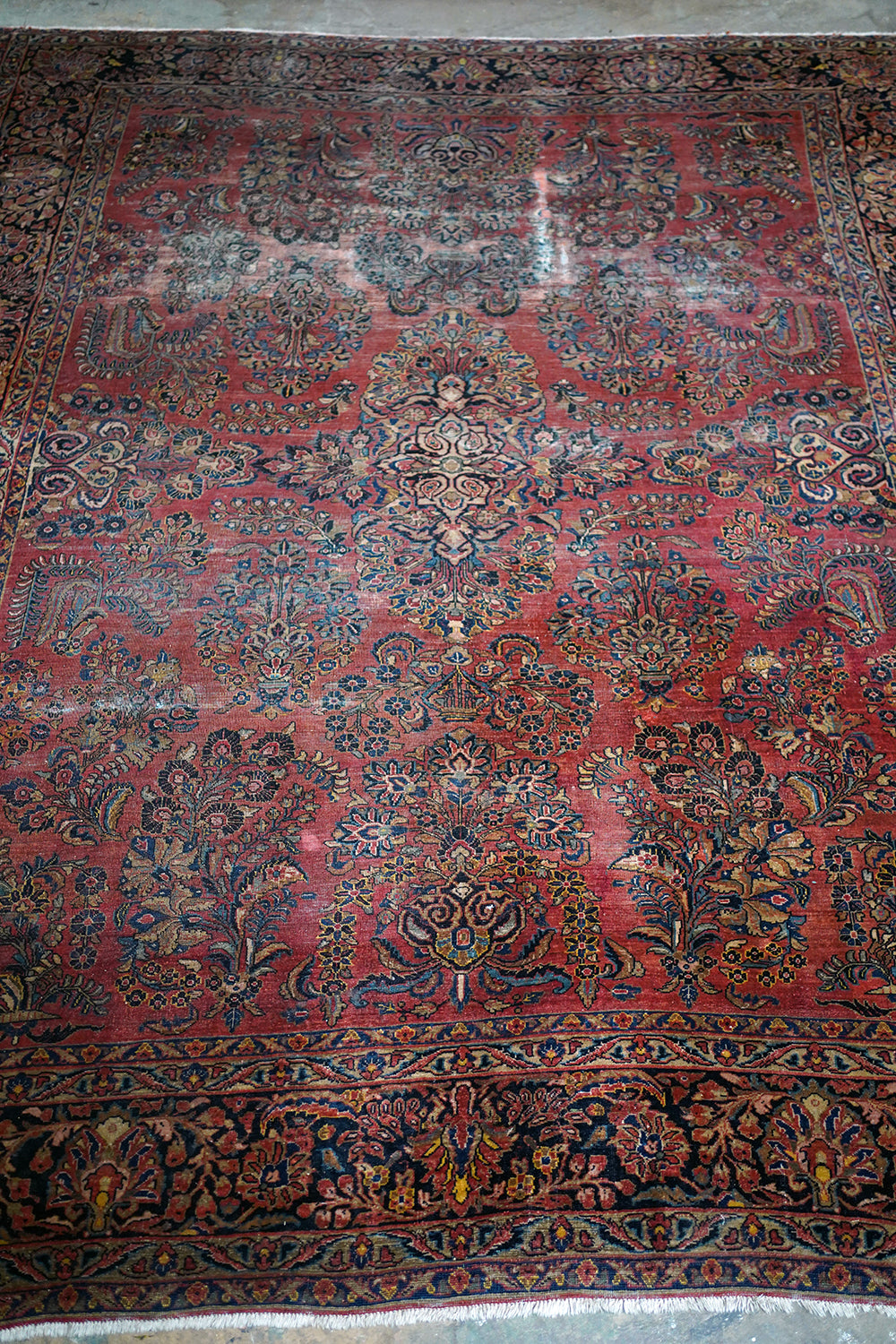 Sarouk (sometimes spelt Saroukh) is a city west of Kashan. They are fine, bold rugs with hard backs; and it’s not unusual to find them with breaks and tears because of this hardness. The colours are usually strong, contrasts great. They are made with a Sehna knot and are usually very fine. The Sarouk and Kashan may be distinguished from all others by their short velvety nap; dark rich colours; fields of graceful, foliated stalks and floral forms resting on concentric medallions; and the fine, firm texture of the weave.