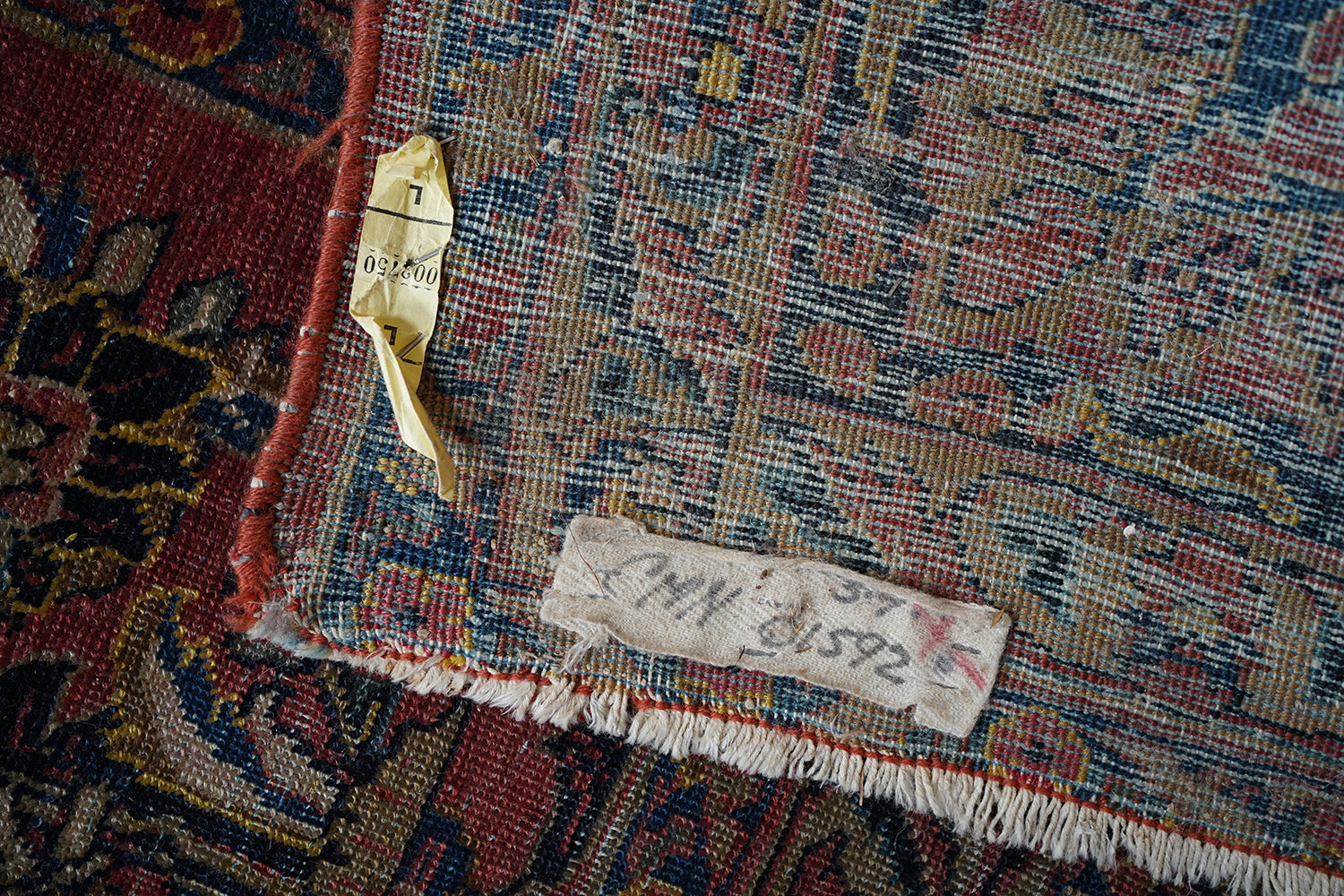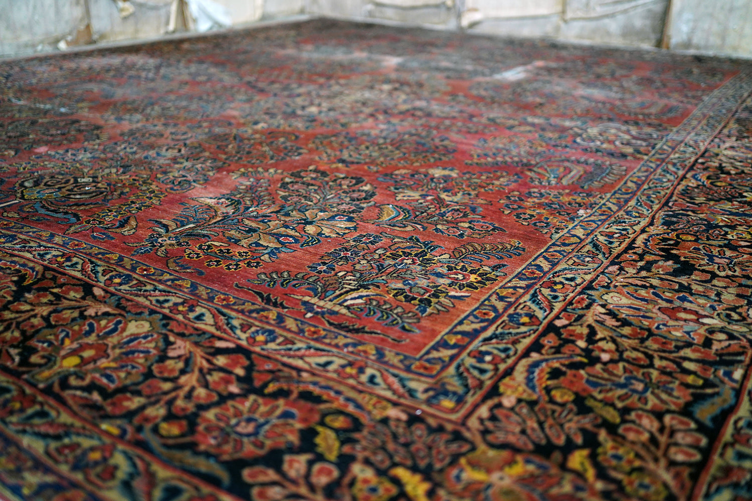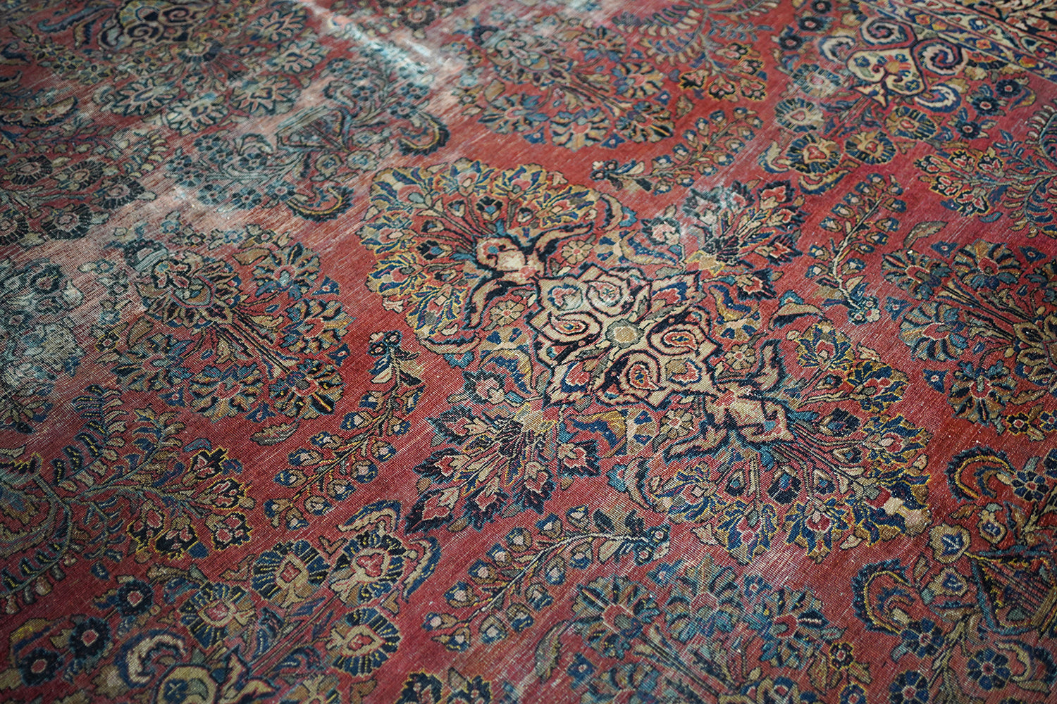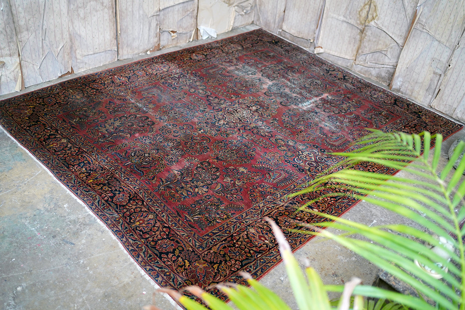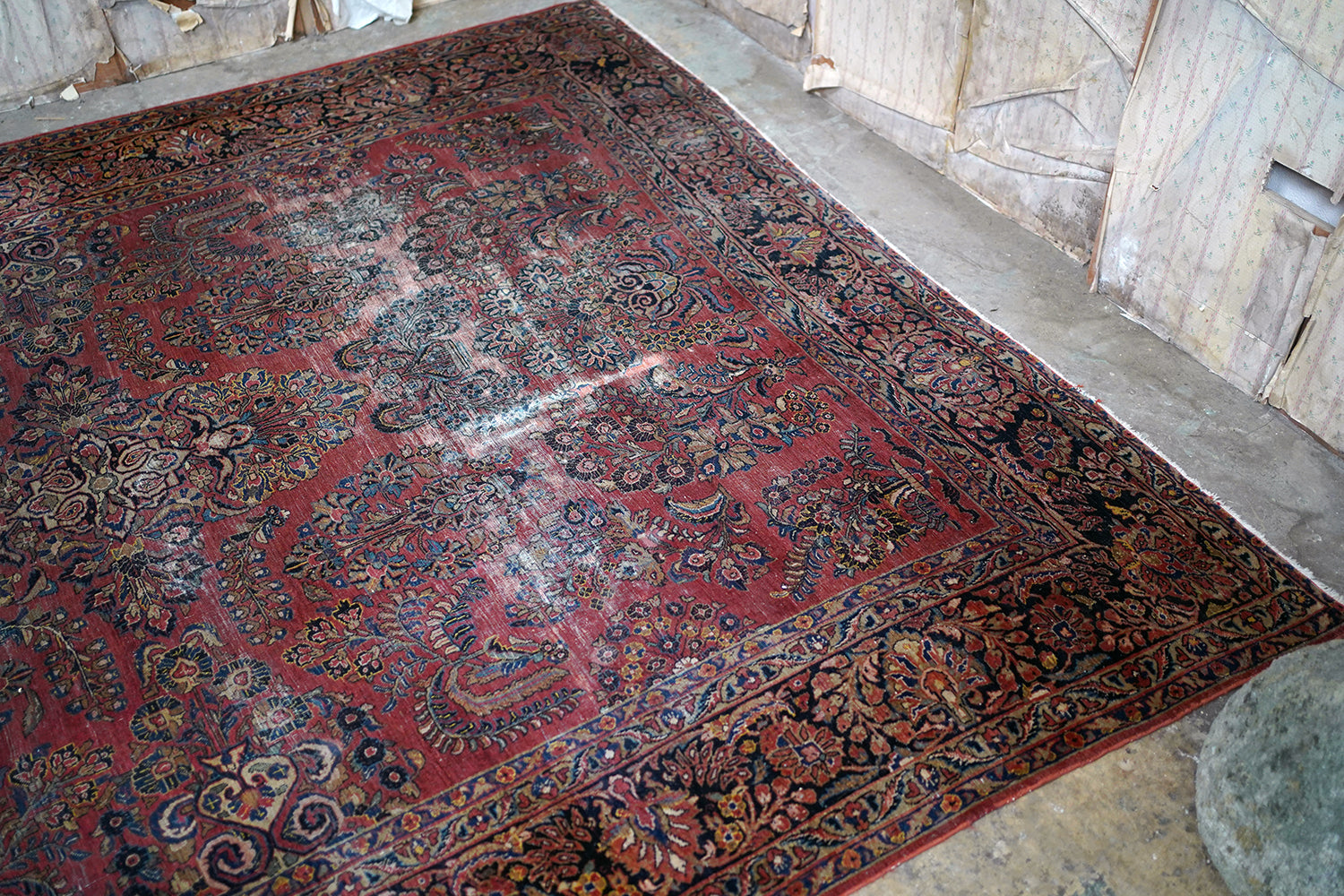 Sarouk (sometimes spelt Saroukh) is a city west of Kashan. They are fine, bold rugs with hard backs; and it’s not unusual to find them with breaks and tears because of this hardness. The colours are usually strong, contrasts great. They are made with a Sehna knot and are usually very fine. The Sarouk and Kashan may be distinguished from all others by their short velvety nap; dark rich colours; fields of graceful, foliated stalks and floral forms resting on concentric medallions; and the fine, firm texture of the weave.
