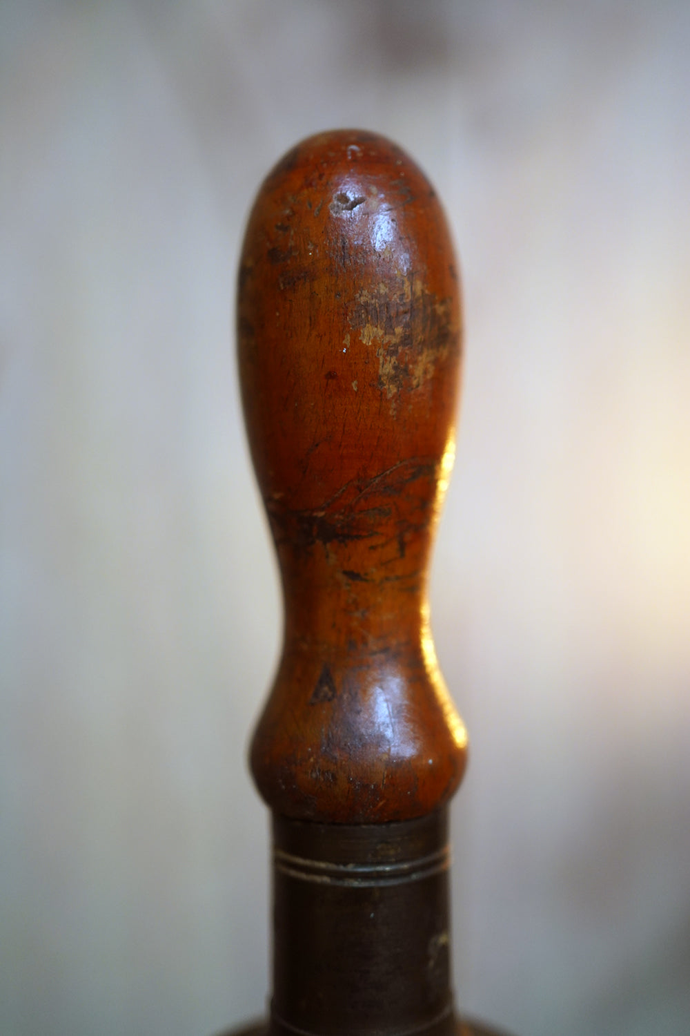 These heavy hand bells formed part of the infrastructure of the nineteenth century British penal and policing system. Issued as government property, indicated by the Broad Arrow ordnance mark, they were used by prison warders, night watchmen and institutional officers to raise the alarm, summon assistance or signal emergencies within gaols, workhouses and convict establishments. Their form prioritised durability and audibility: a thick-walled bronze bell producing a deep, carrying tone, combined with a robust turned wooden handle suited to constant use.