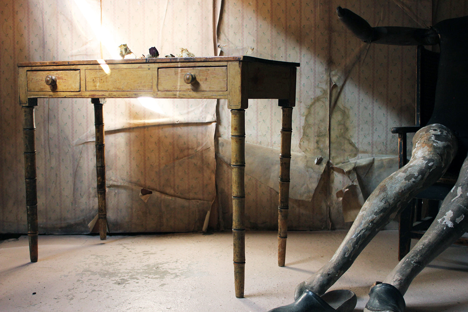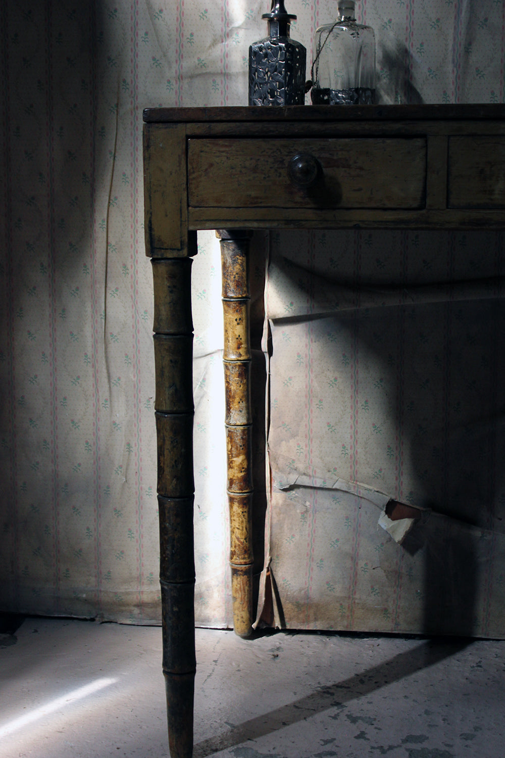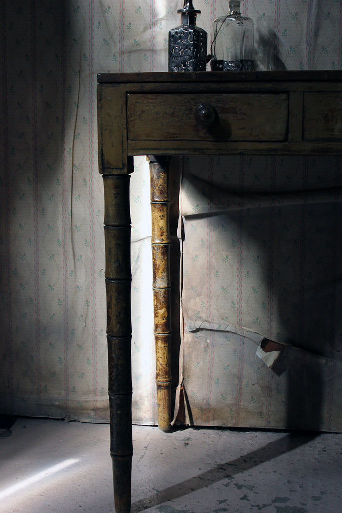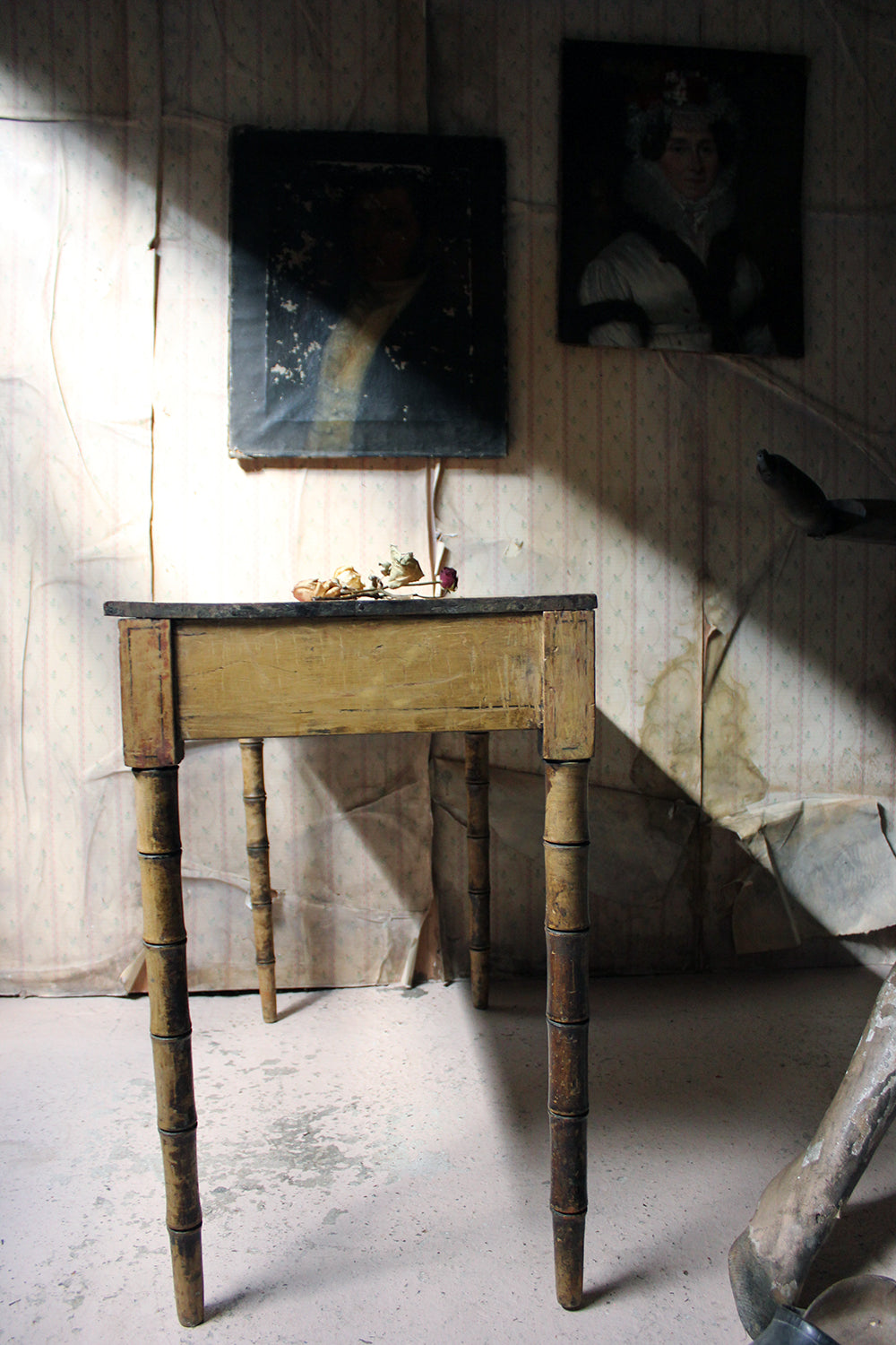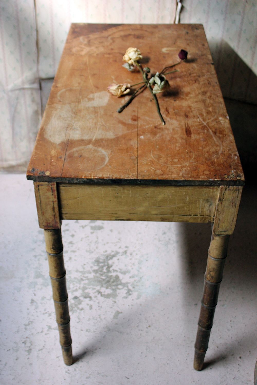 The table shows a consistent amount of wear to its original paintwork and proves beautifully decorative. The top now is largely absent of any paint, having ring marks and stains as per the photographs; with the drawers running smoothly and the carcass standing well.